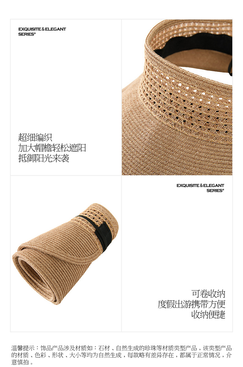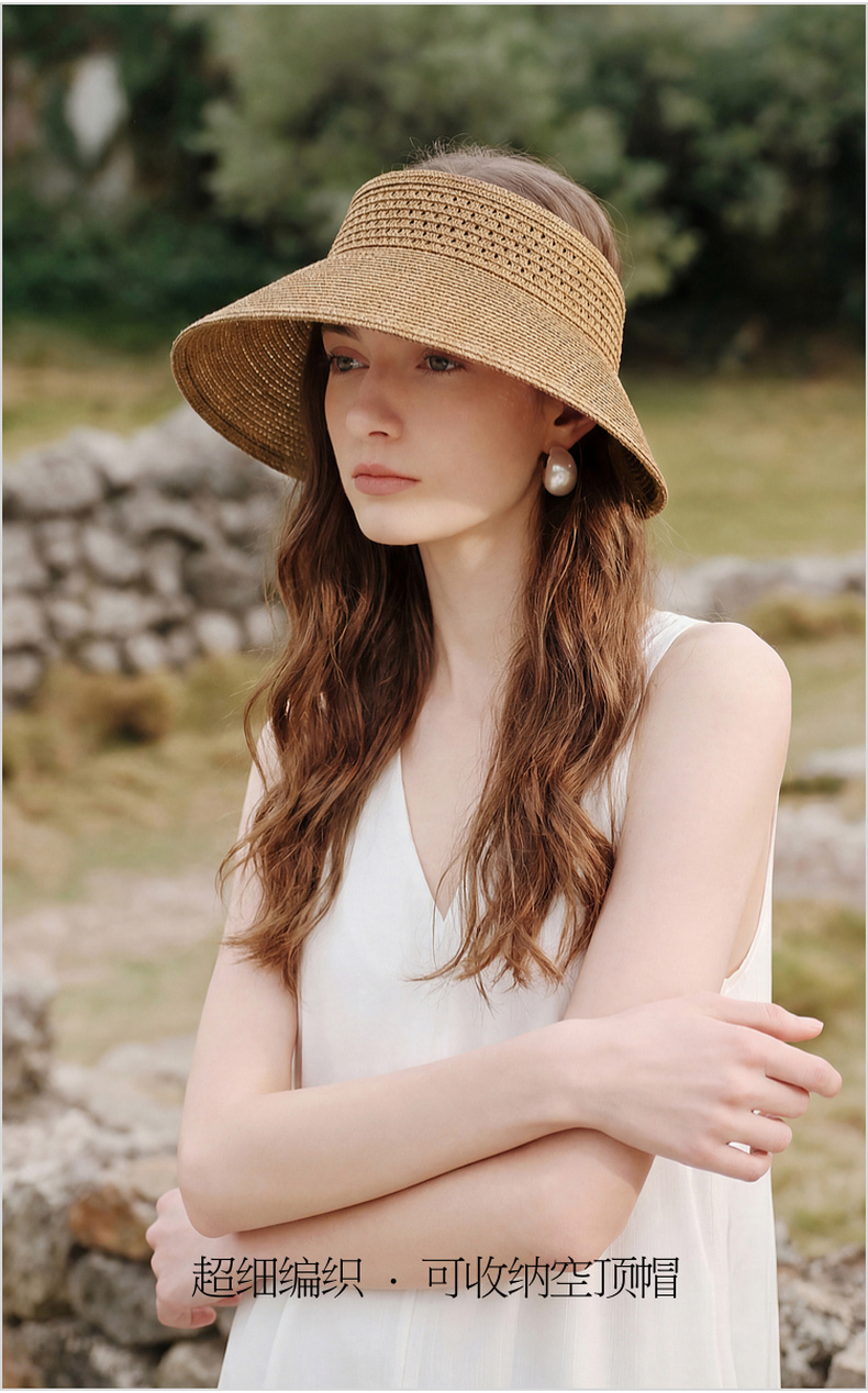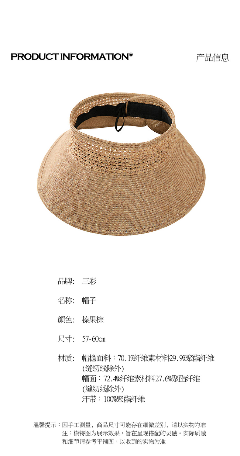 三彩2026新款空顶大帽檐遮阳帽沙滩海边出游夏编织可卷收纳帽子女