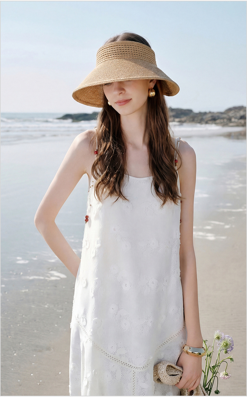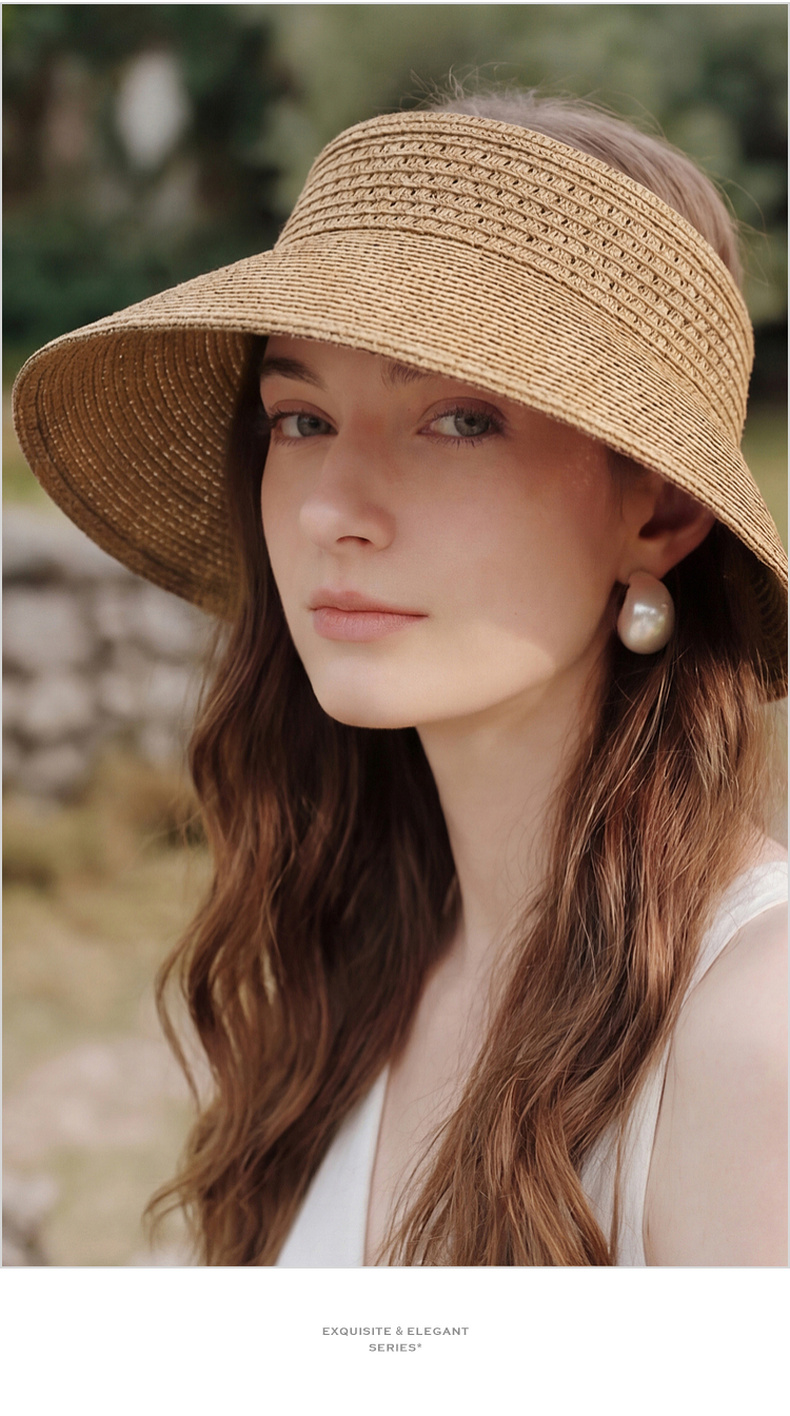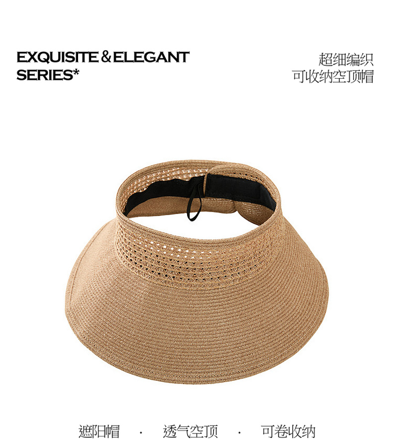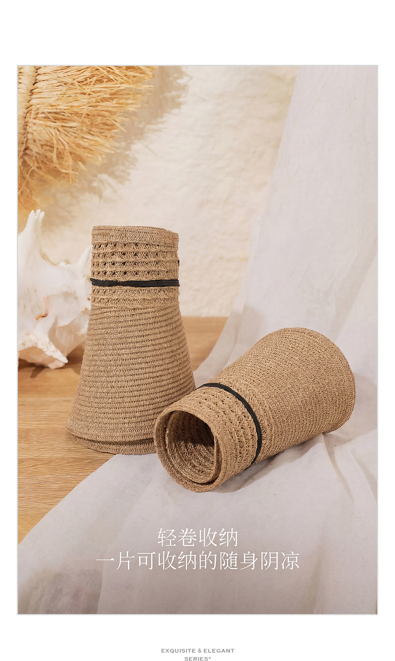三彩2026新款空顶大帽檐遮阳帽沙滩海边出游夏编织可卷收纳帽子女