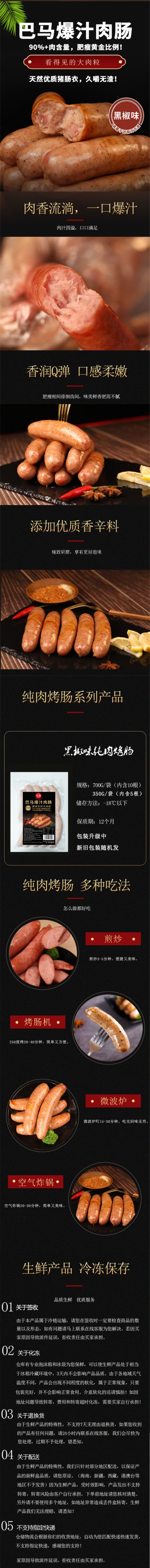 【元垦】(顺丰)巴马爆汁肉肠 黑胡椒 烤肠 烤肠纯香肉肠(70g/根)350g/包*3