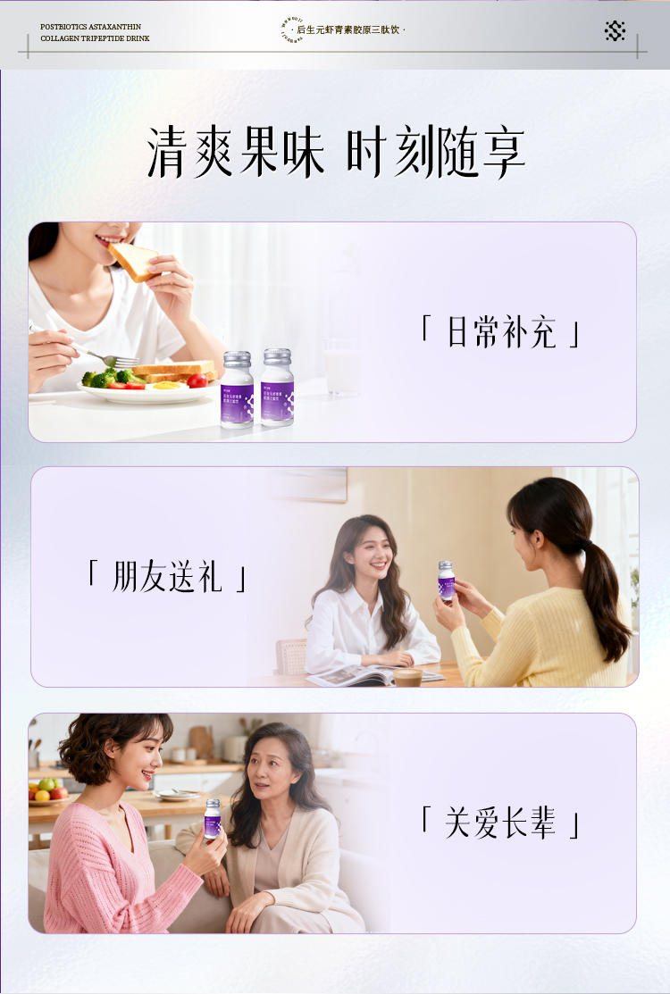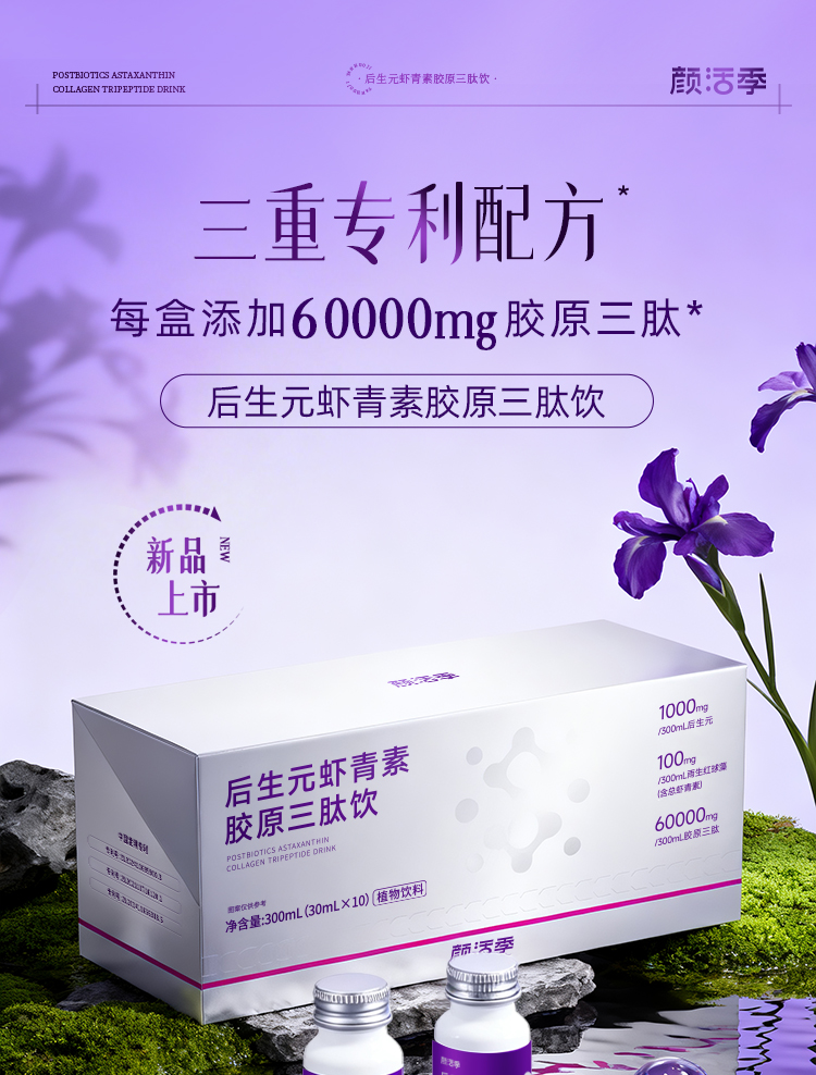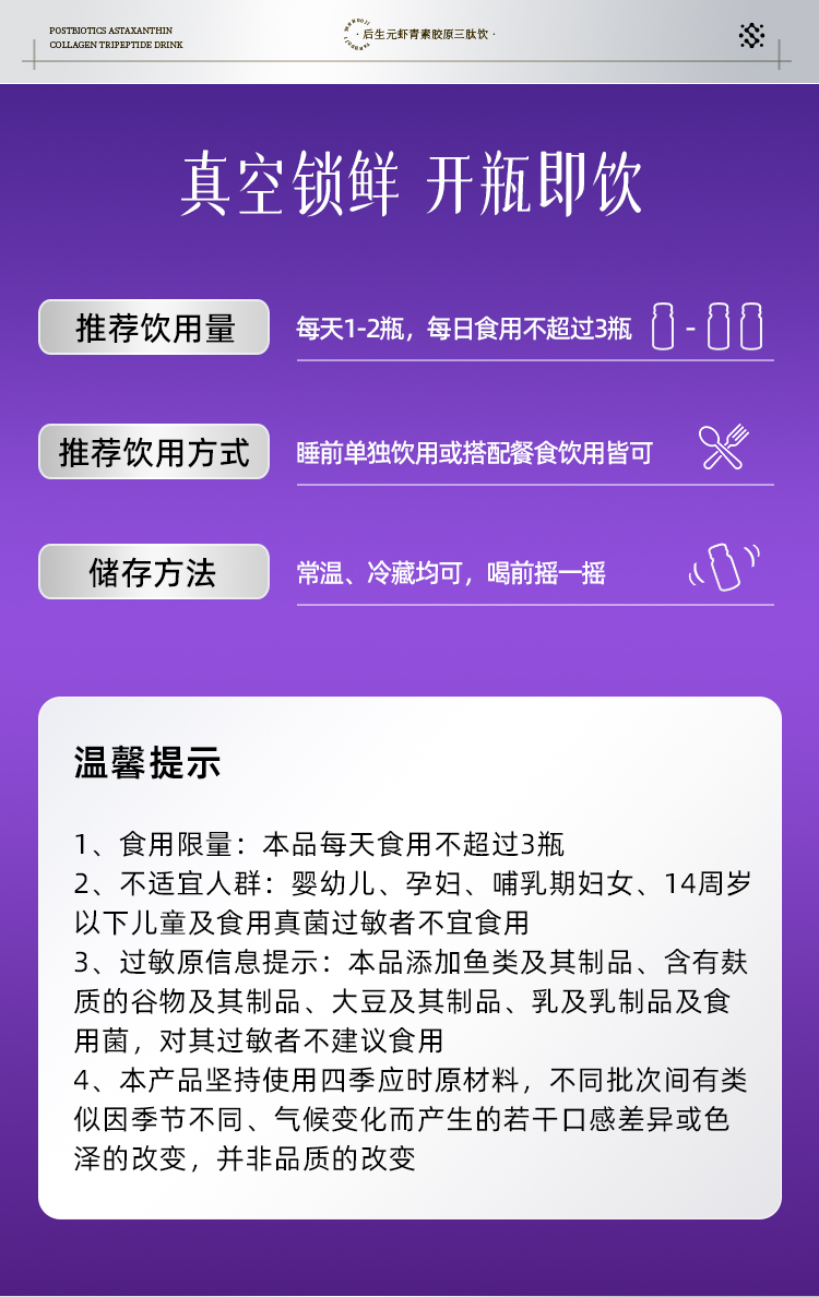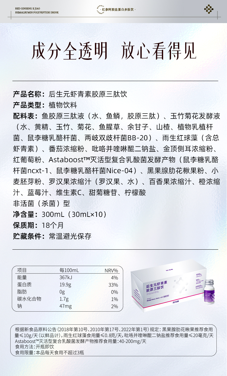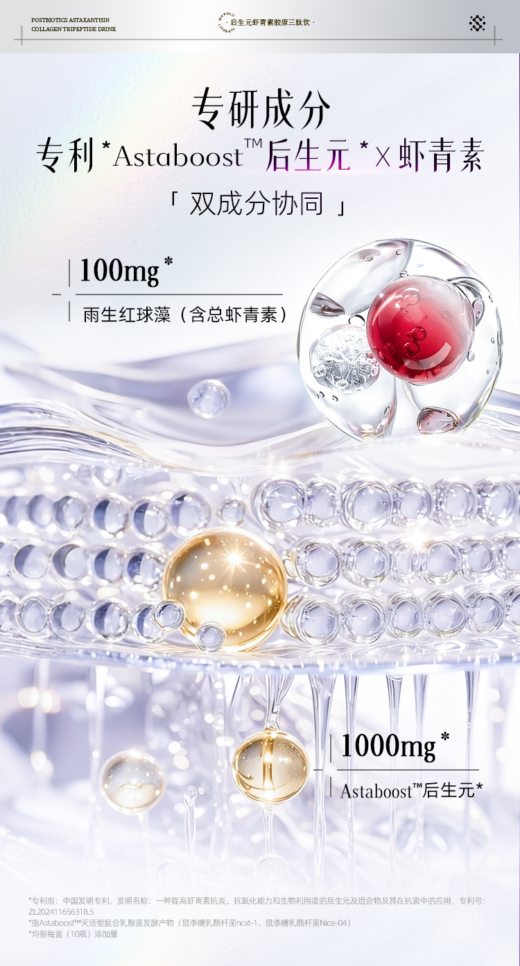 【科学复配】颜活季 后生元虾青素胶原三肽饮 30ml*10瓶/盒 真空锁鲜开瓶即饮