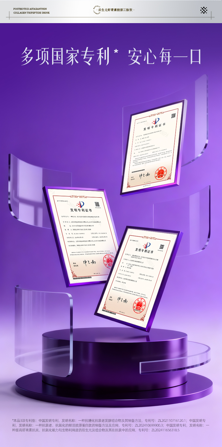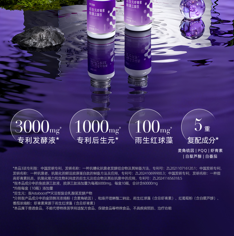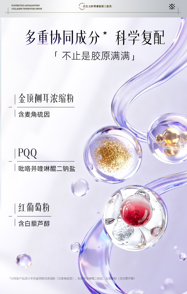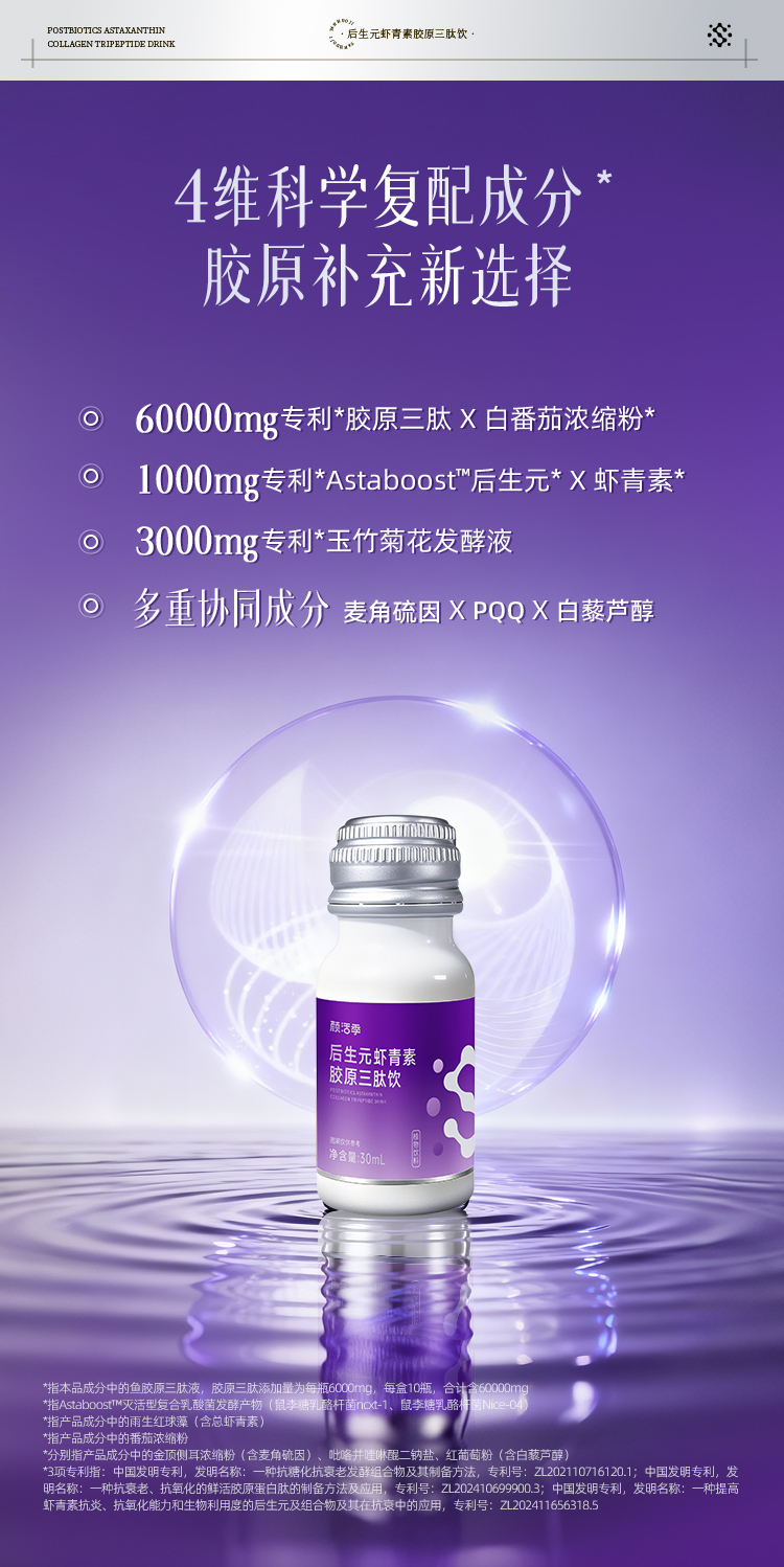 【科学复配】颜活季 后生元虾青素胶原三肽饮 30ml*10瓶/盒 真空锁鲜开瓶即饮