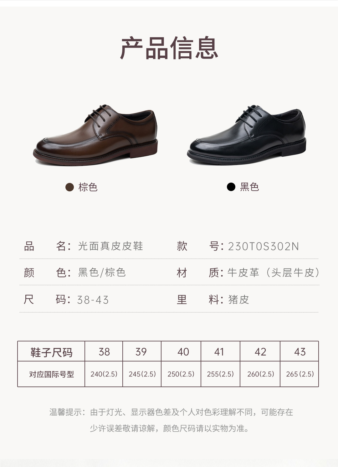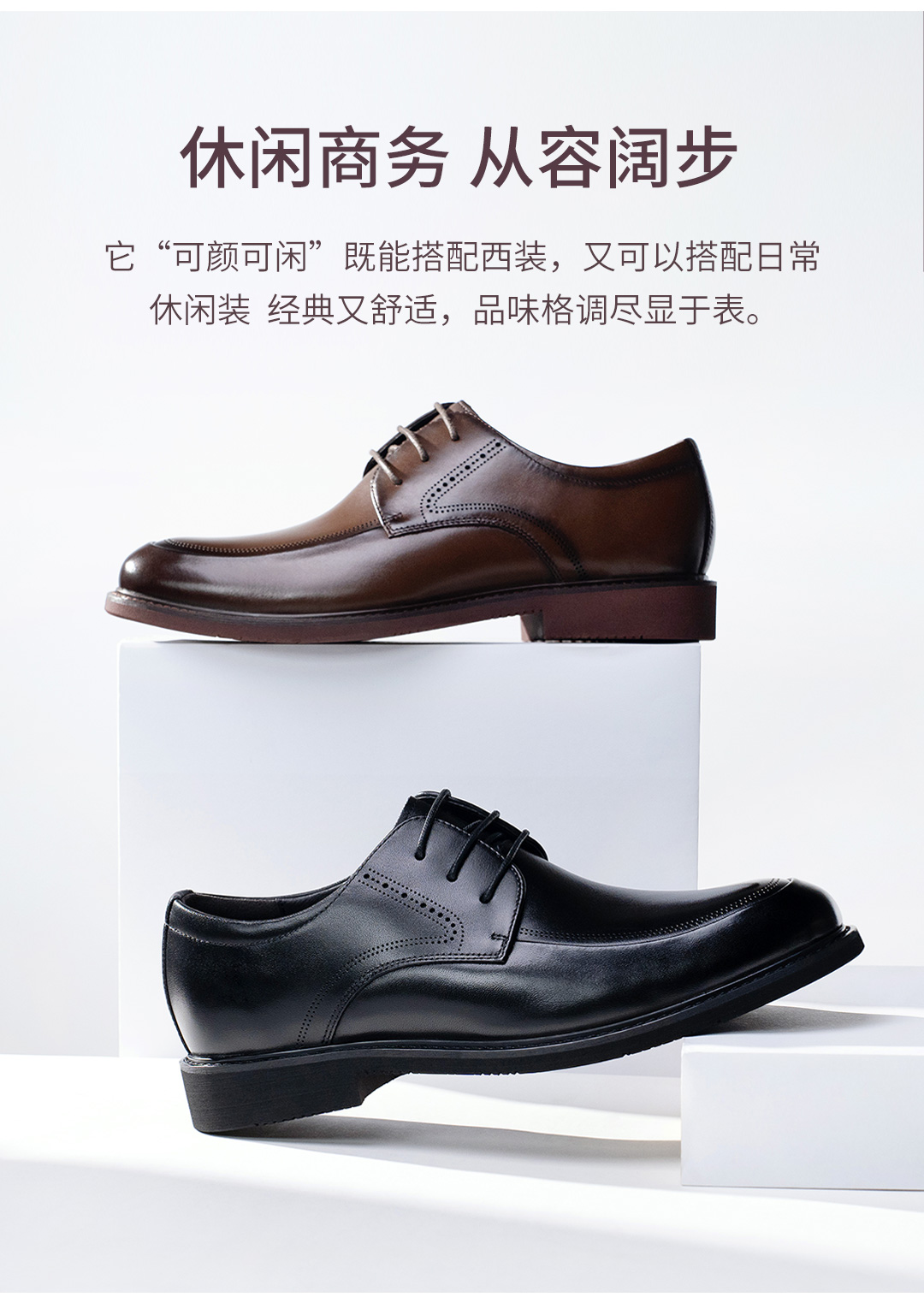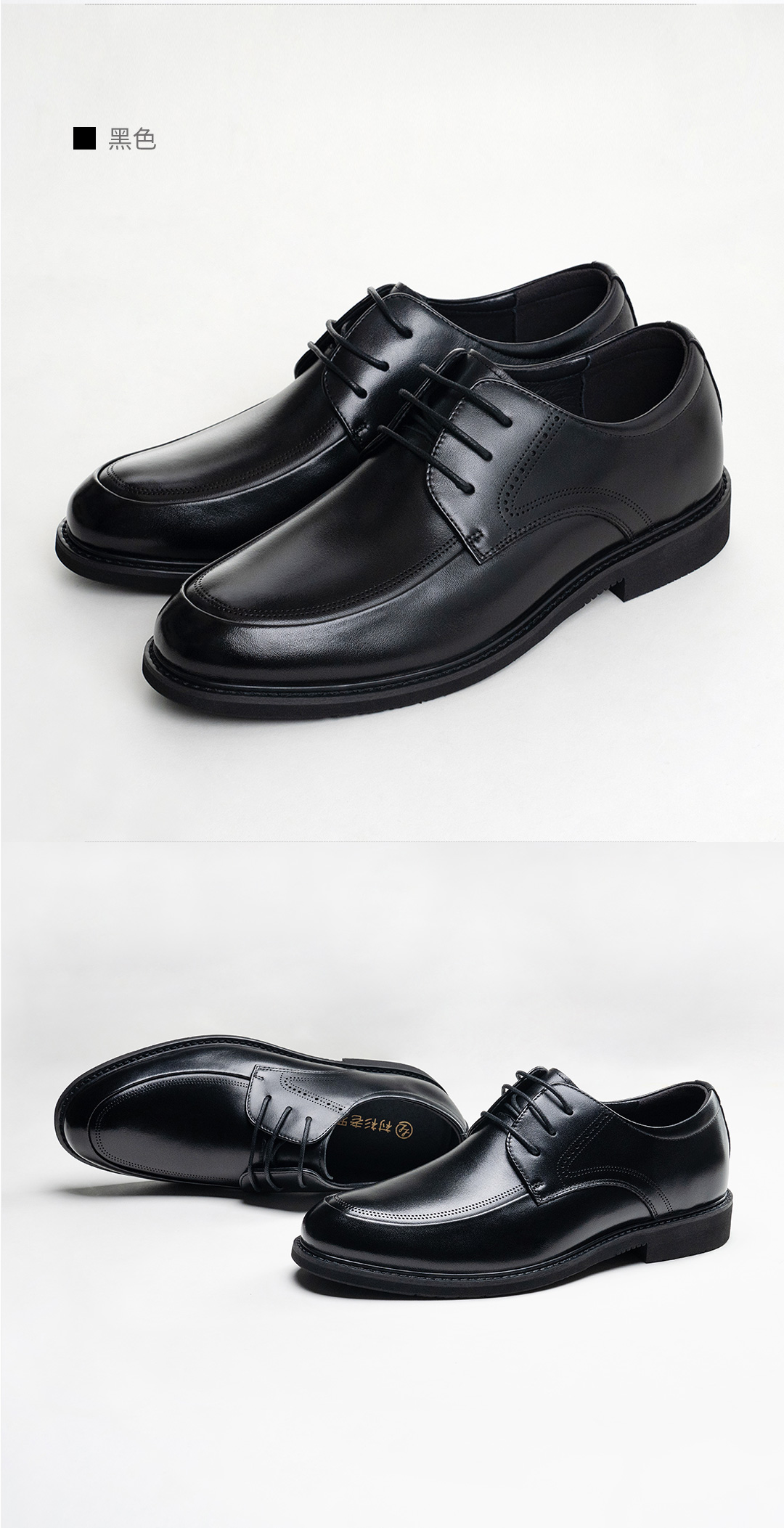 时尚通勤光面系带真皮皮鞋