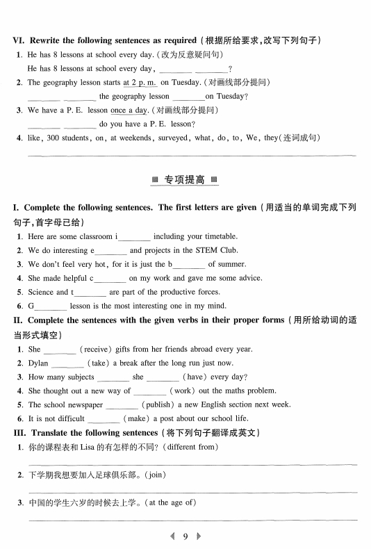 学生需提前完成对应课节练习,老师上课讲解方法、技巧、总结题型。
