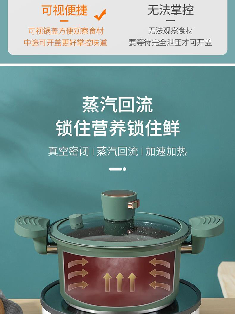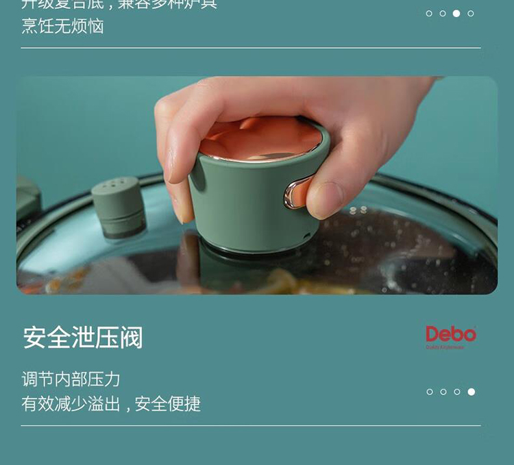 德铂Debo 米尔斯微压锅 DEP-DS323 22cm 不粘煲汤锅压力锅