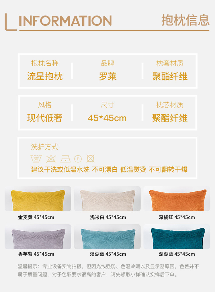 罗莱软装 流星抱枕金麦黄 45*45cm