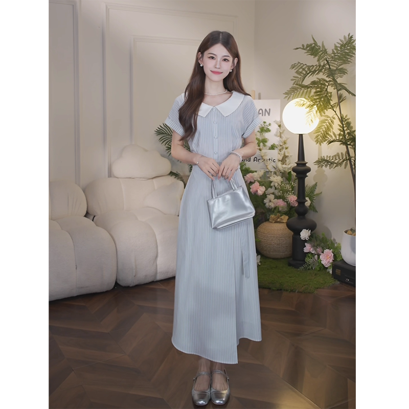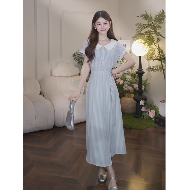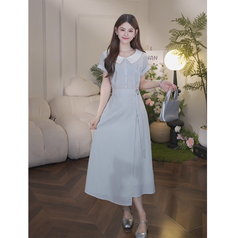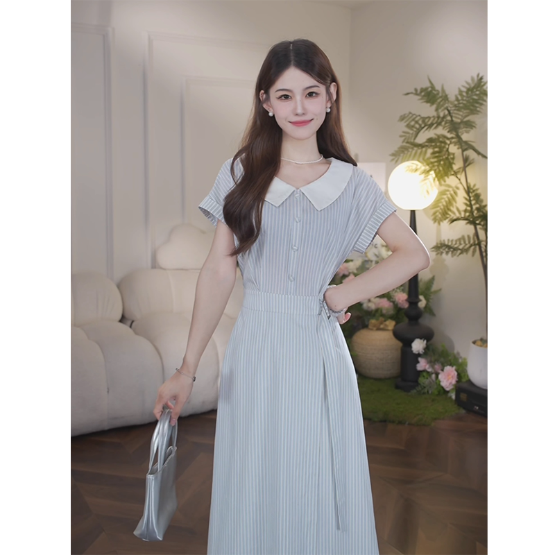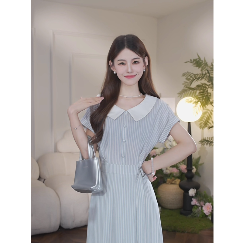 【6折秒杀】鹿向南「蓝白叙事」夏季新款气质条纹连衣裙收腰修身显瘦设计感DYL661943