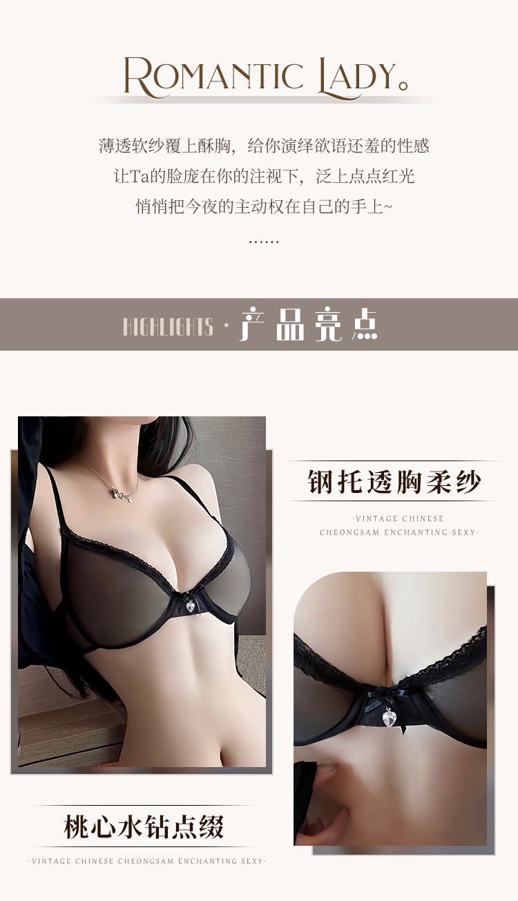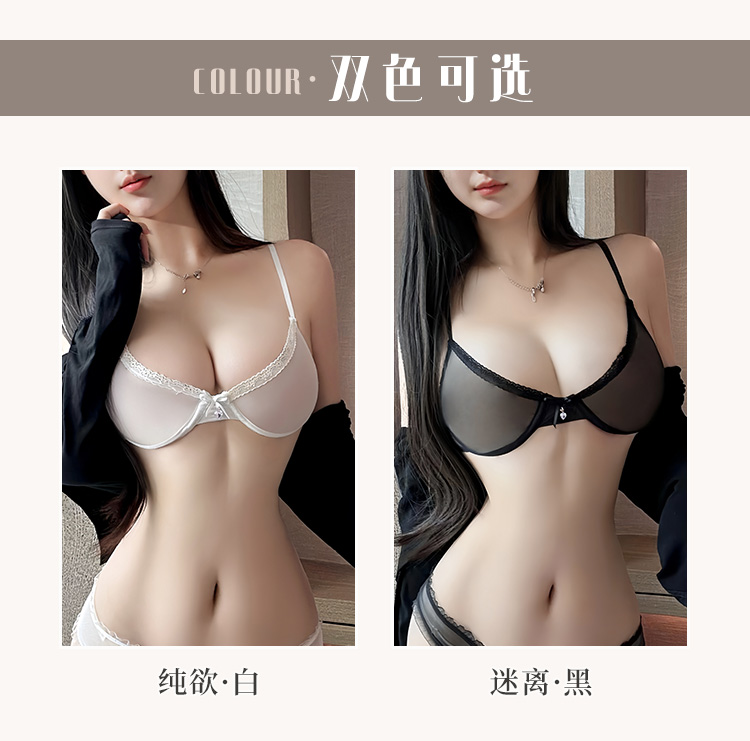【情趣内衣】霏慕 透纱显胸钢圈半托文胸6148