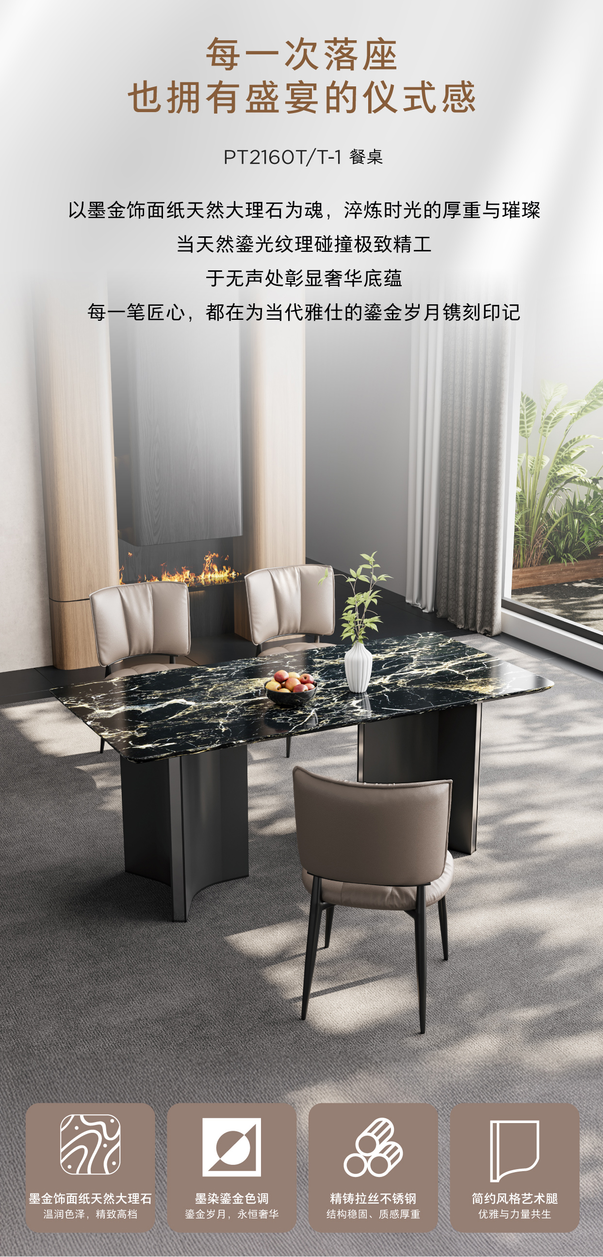 顾家家居整装 意式轻奢 餐桌餐椅PT2160T/Y