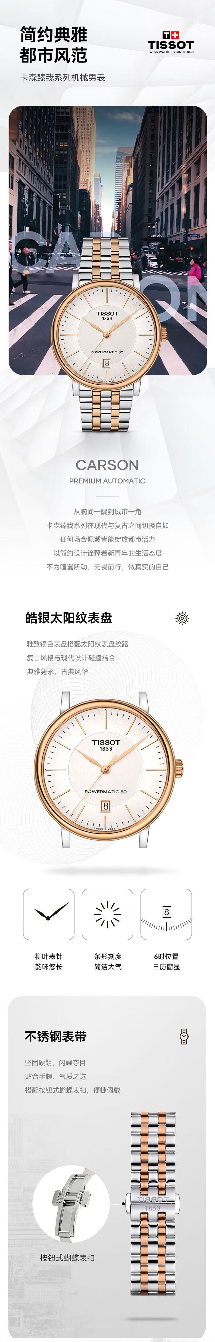天梭(TISSOT)卡森臻我系列钢带机械男表T122.407.22.031.01