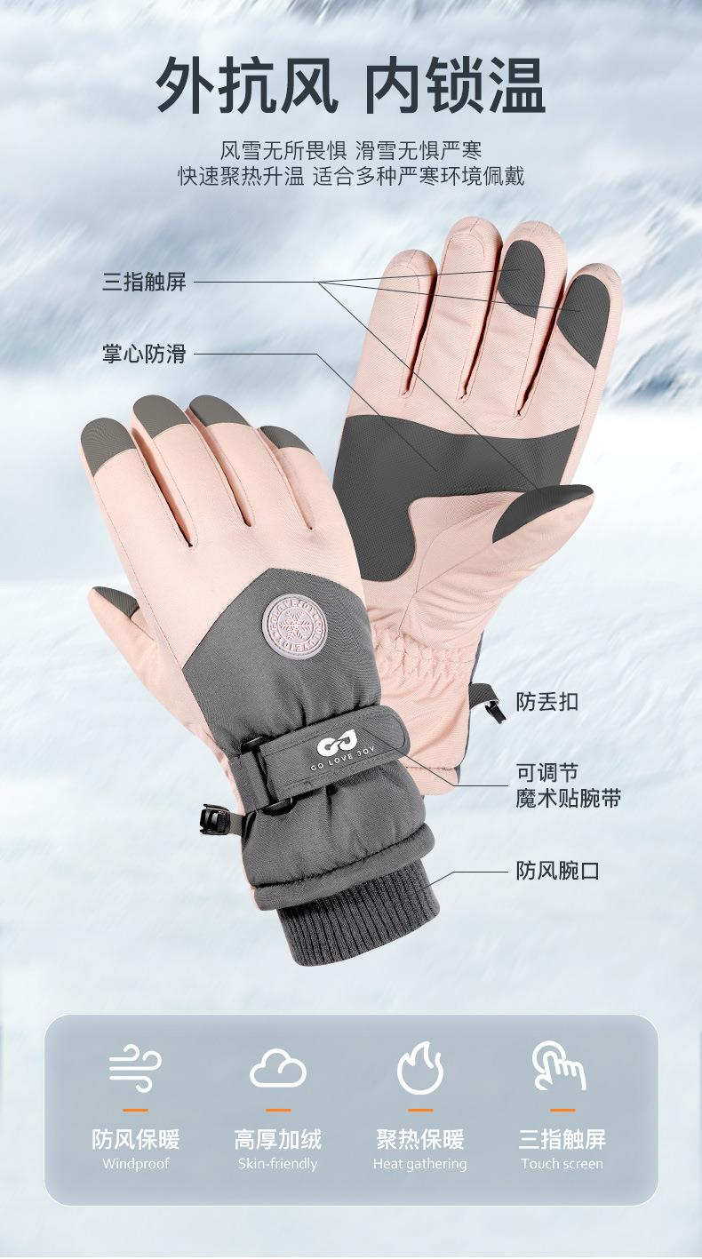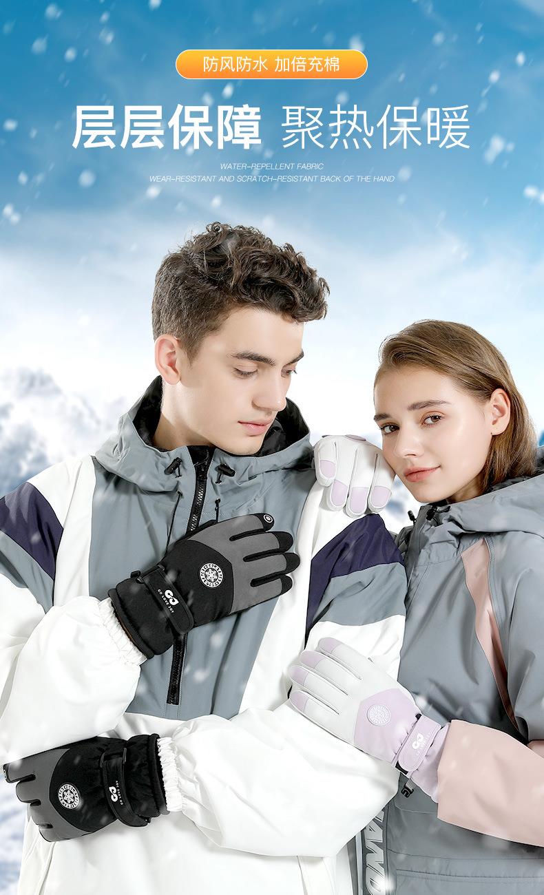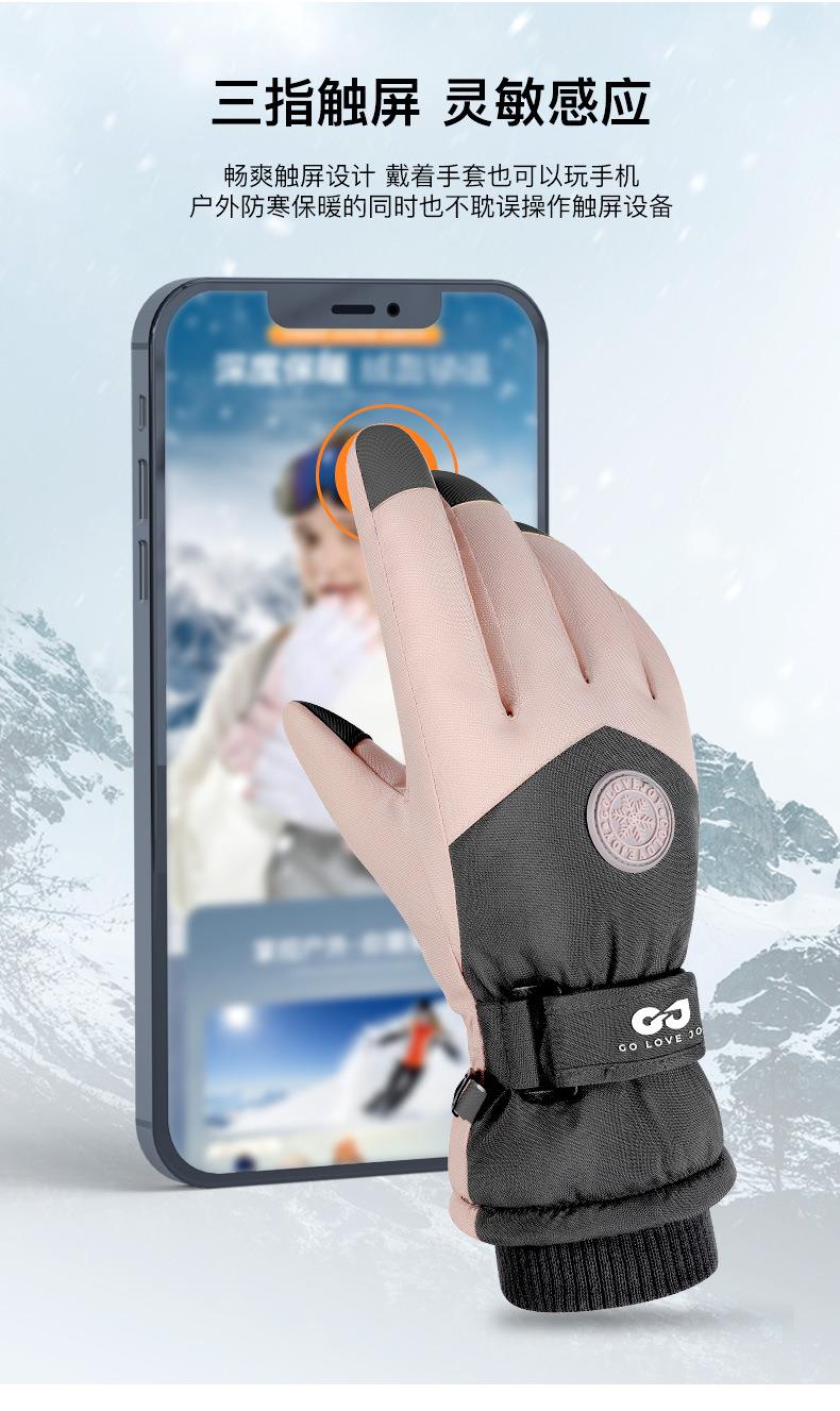 冬季滑雪手套女电动摩托车骑行保暖户外运动防风防水触屏手套批发