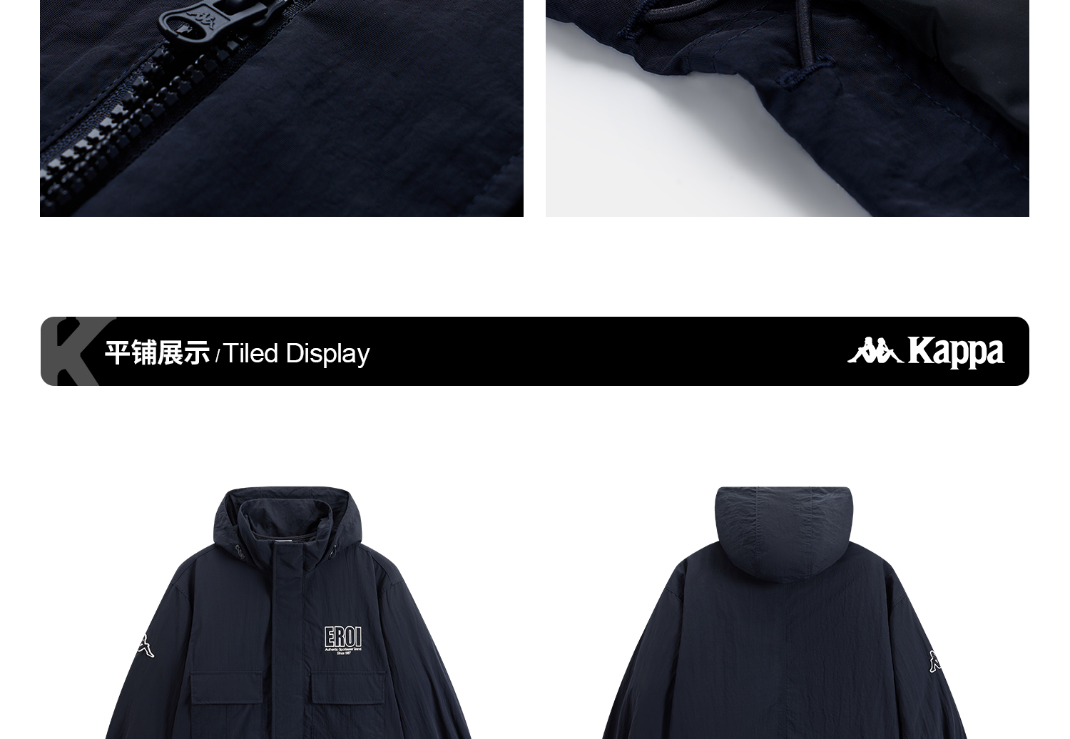 Kappa 运动棉服男2025新款冬季连帽保暖外套防寒两件套K0FY2MM01