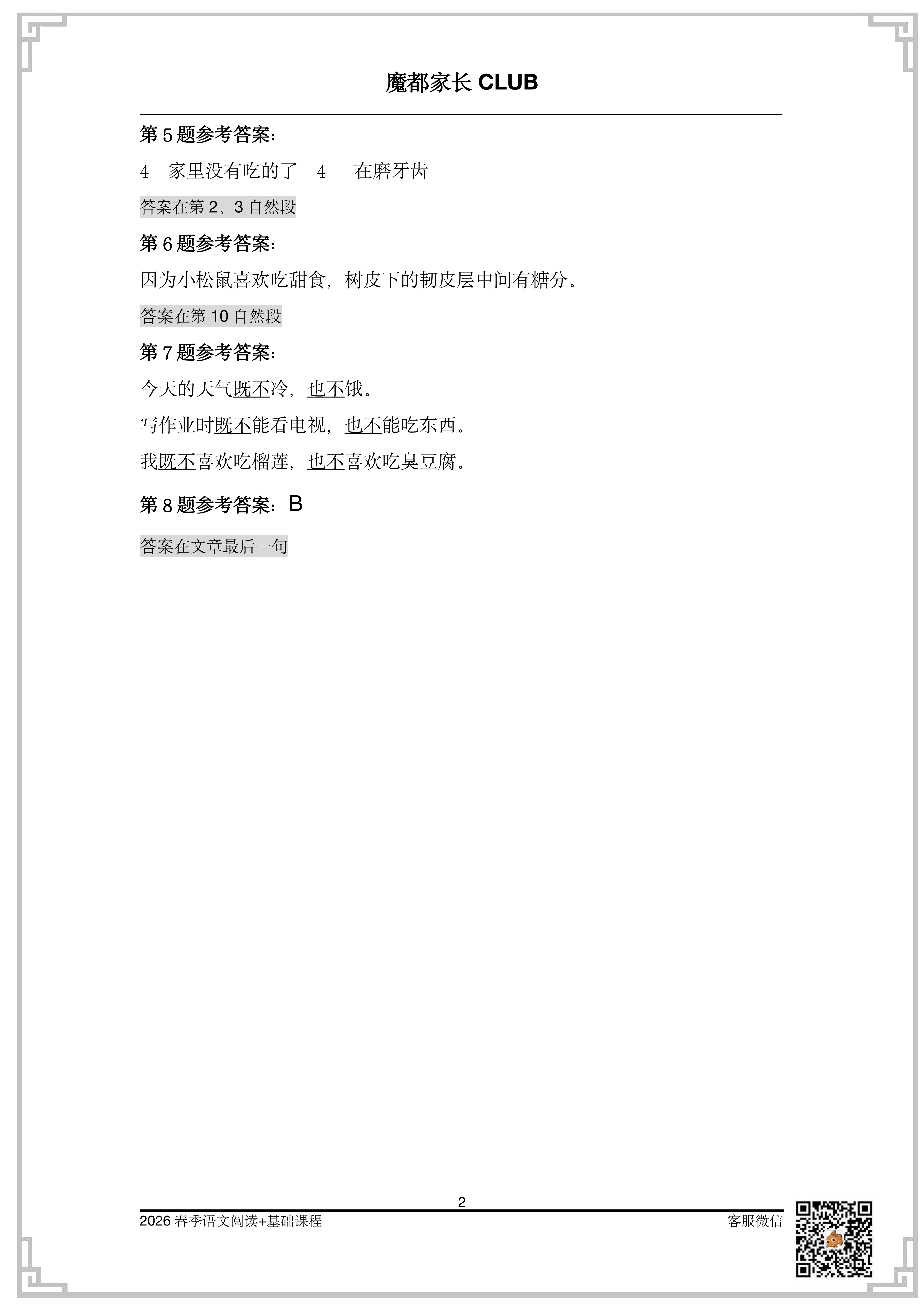 🍒 阅读讲义:2年级《新阅读100》,3-5年级《木头马阅读能力测评B版》