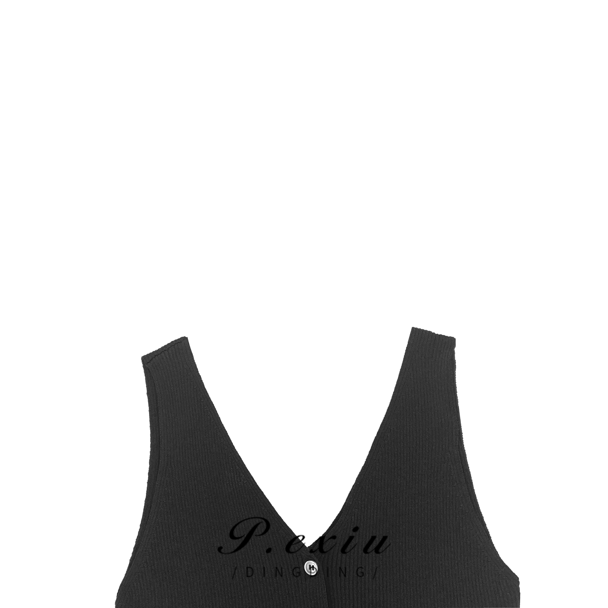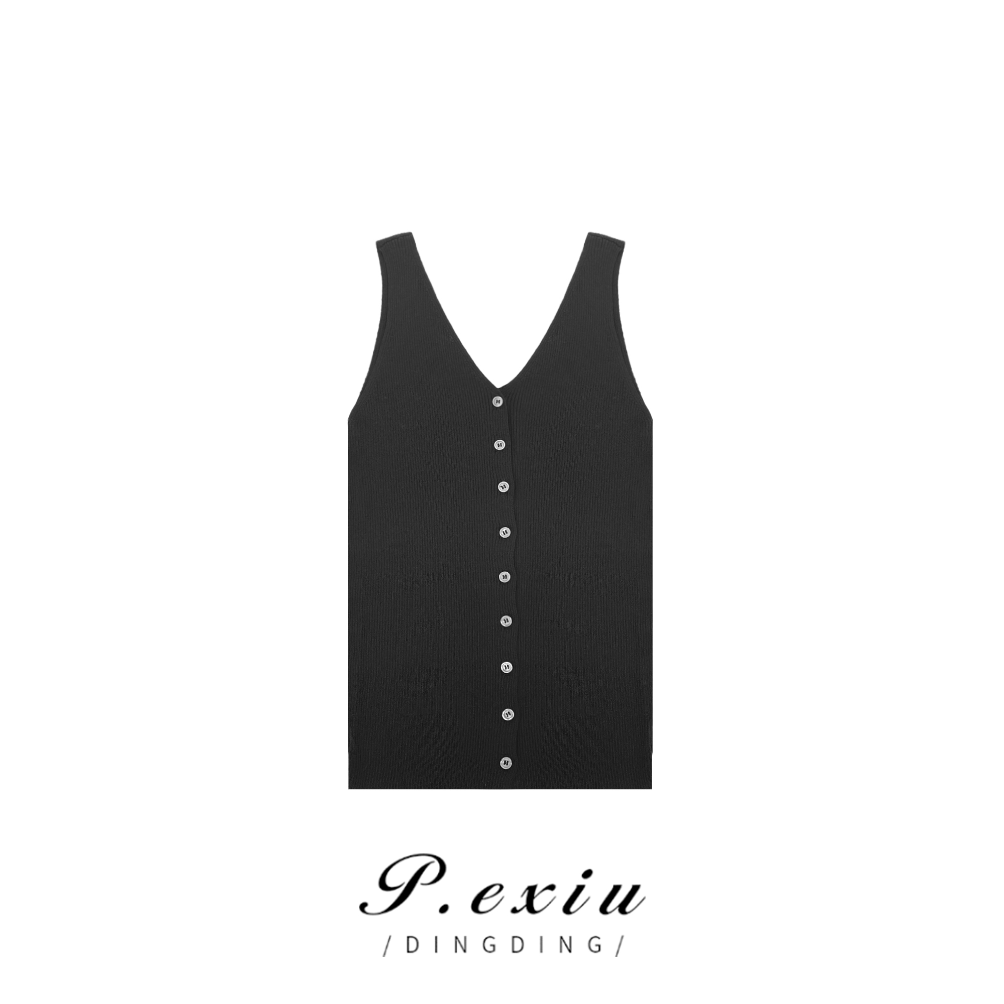 04-1潘依绣丁丁宠粉PanYiXiu/潘依绣人丝定制V领纽扣背心针织衫 Z850