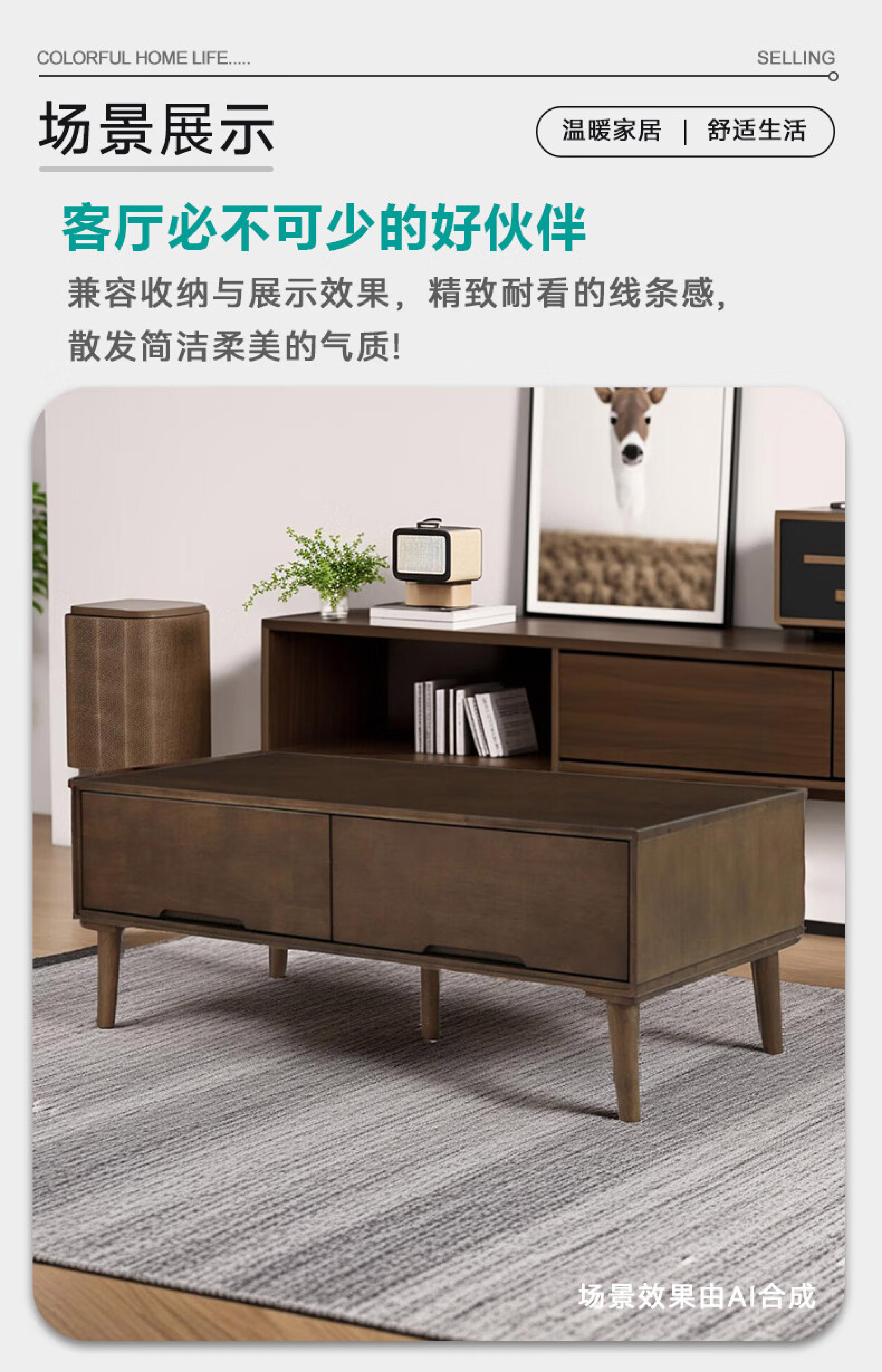 【家具】客厅简约现代茶几 贝塔 带抽屉