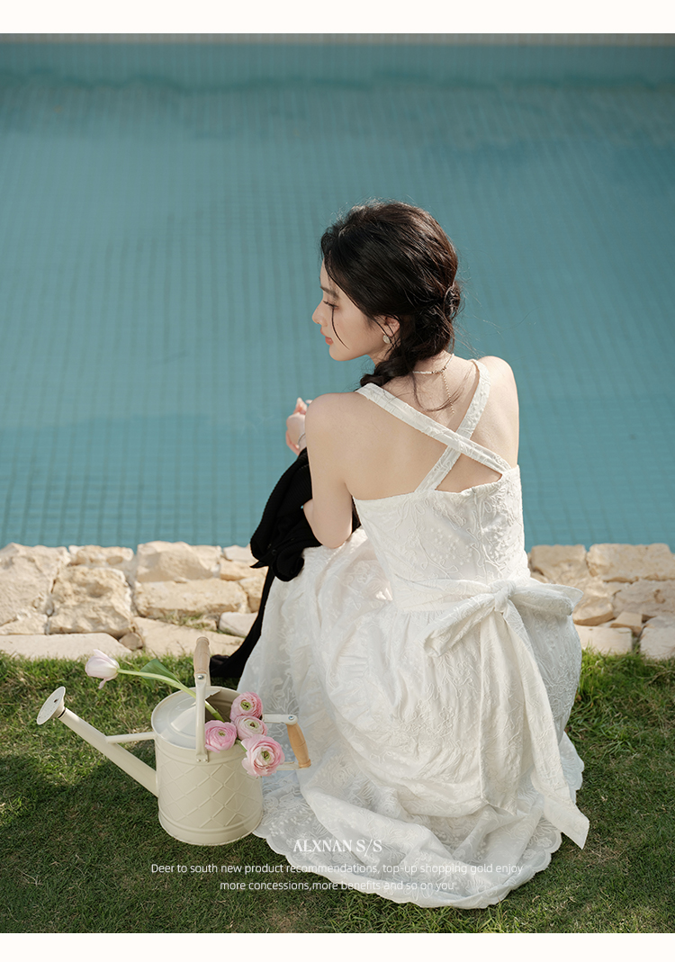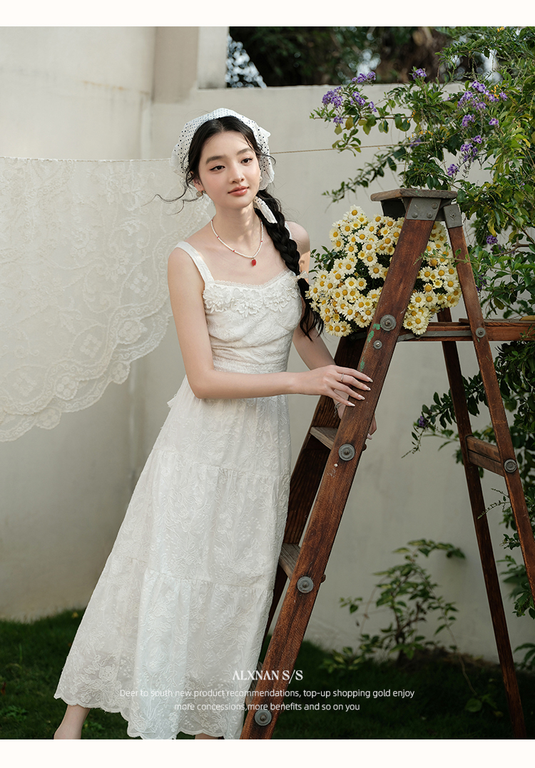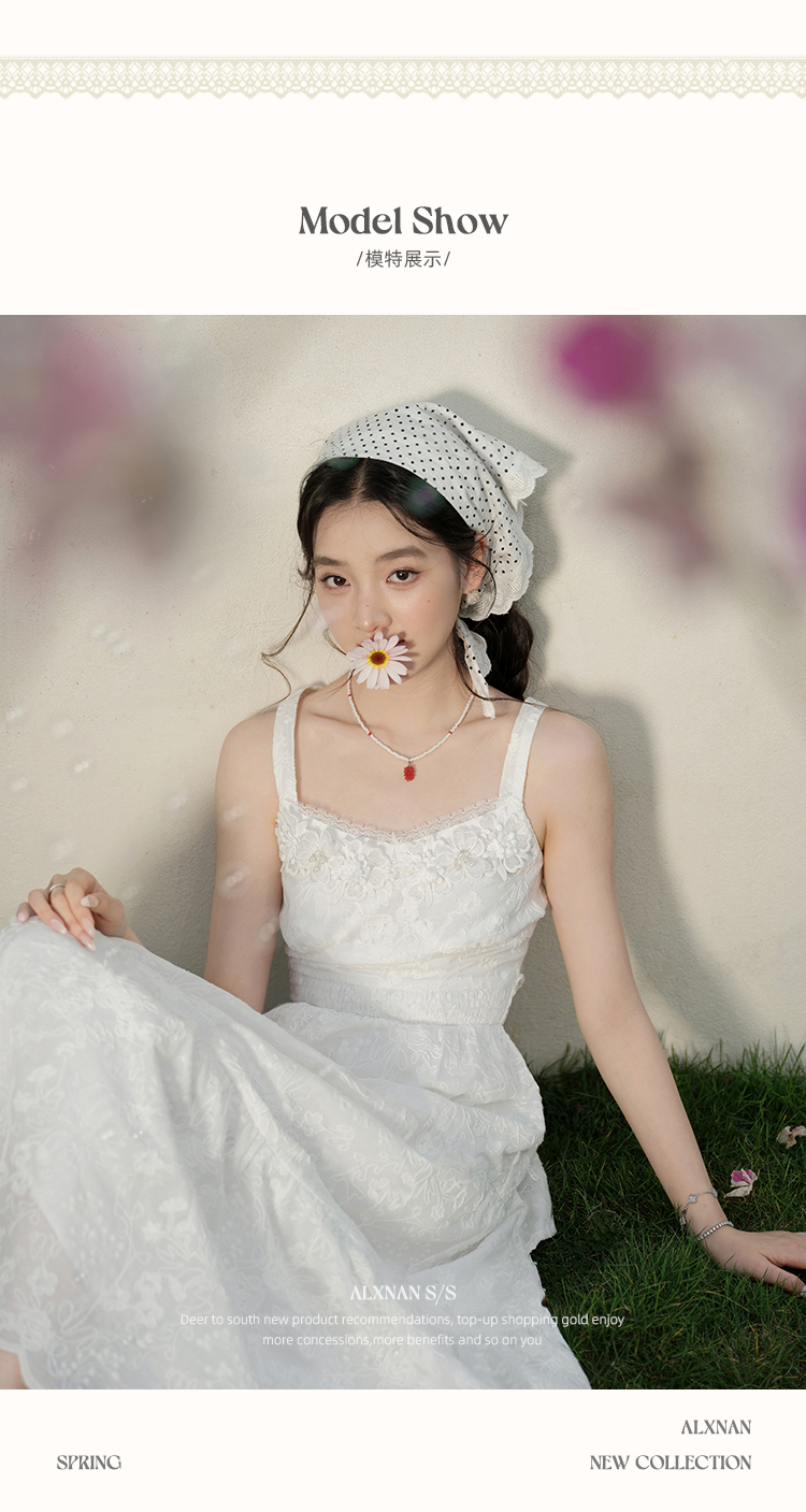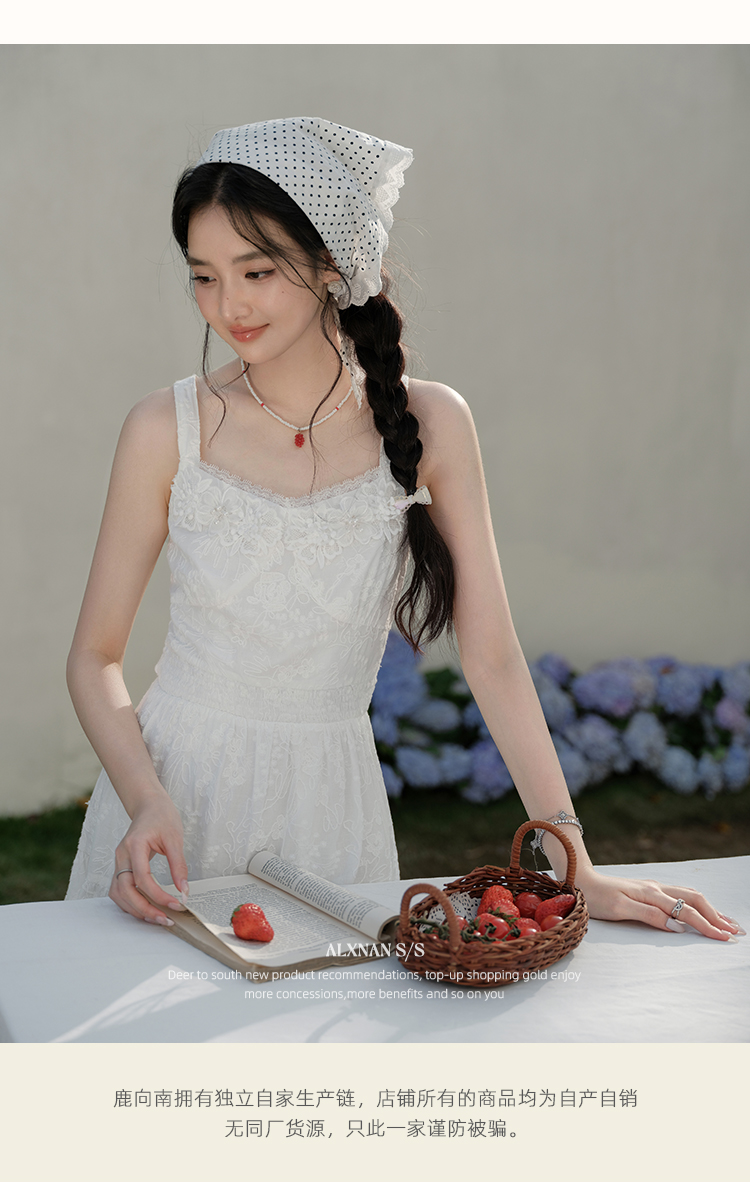 鹿向南「花间絮语」法式白色吊带连衣裙女夏季高级感显瘦长裙子L53731
