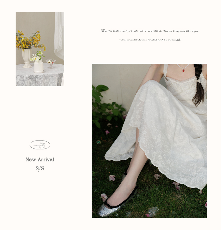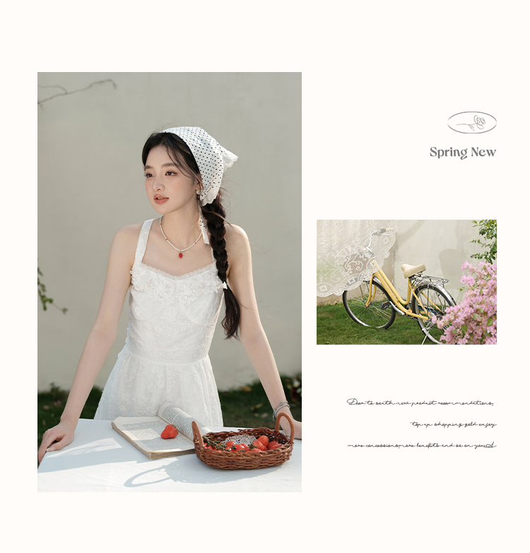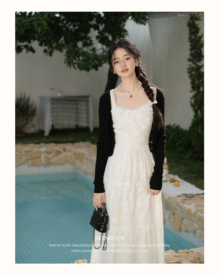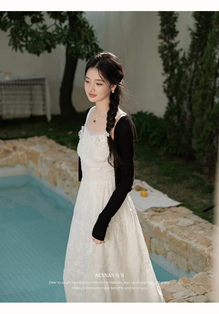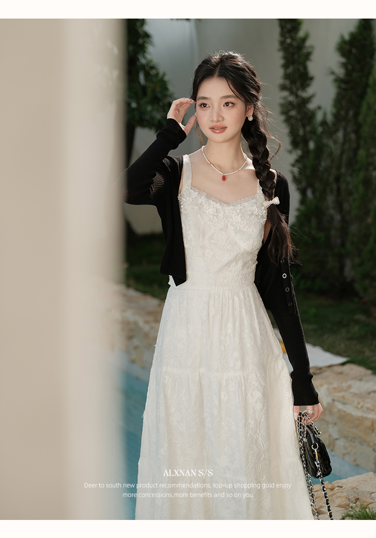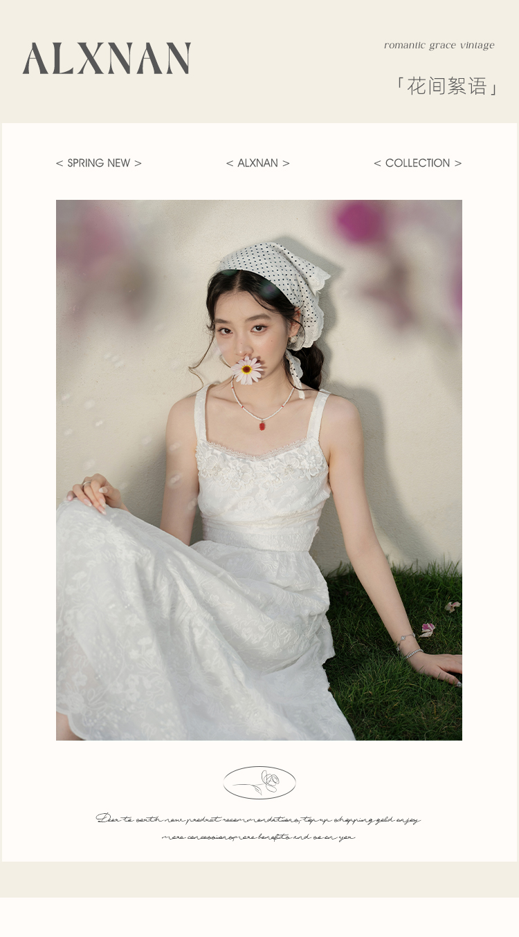 鹿向南「花间絮语」法式白色吊带连衣裙女夏季高级感显瘦长裙子L53731