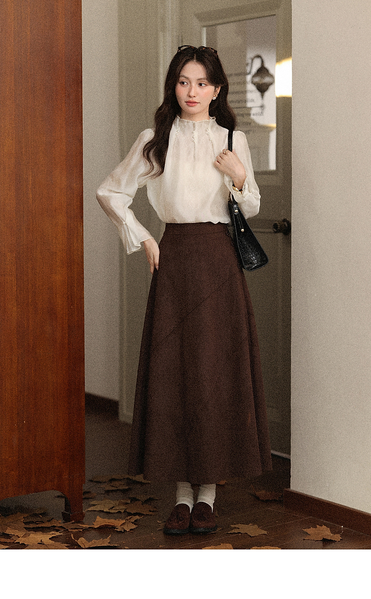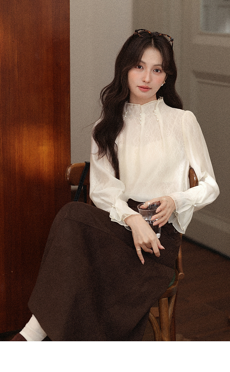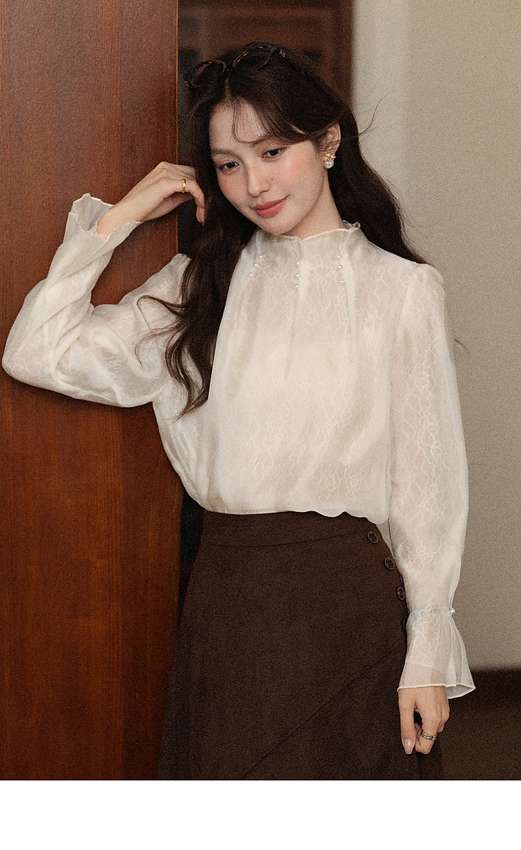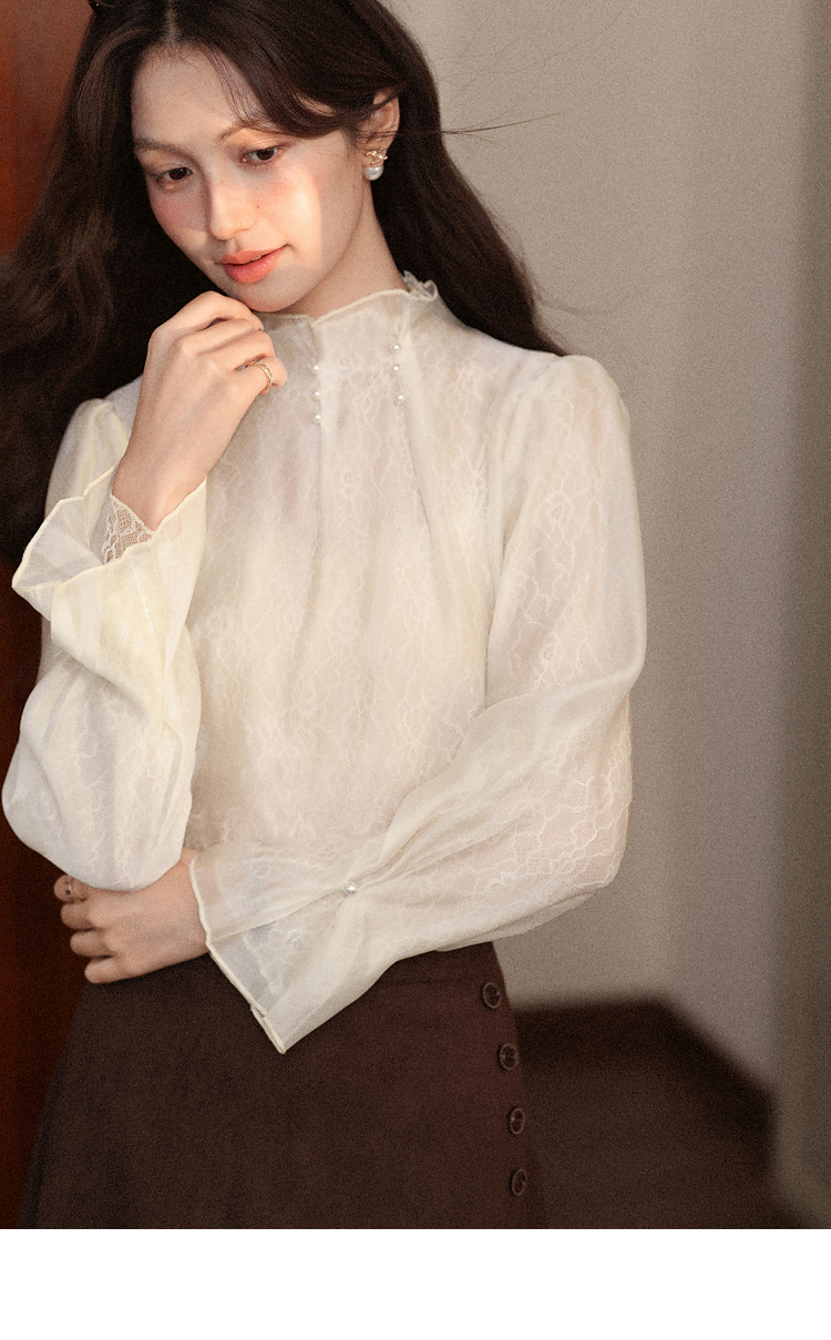 鹿向南「蝶羽花城」千金风长袖衬衫女早秋巨好看米白色法式上衣