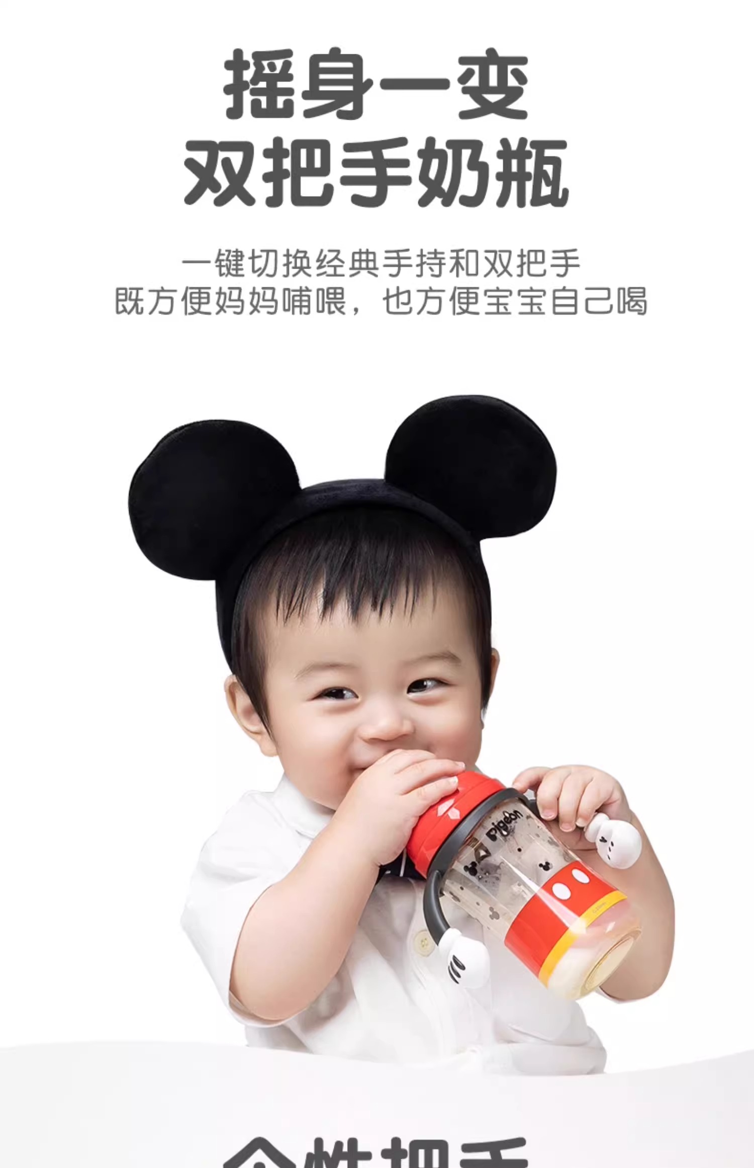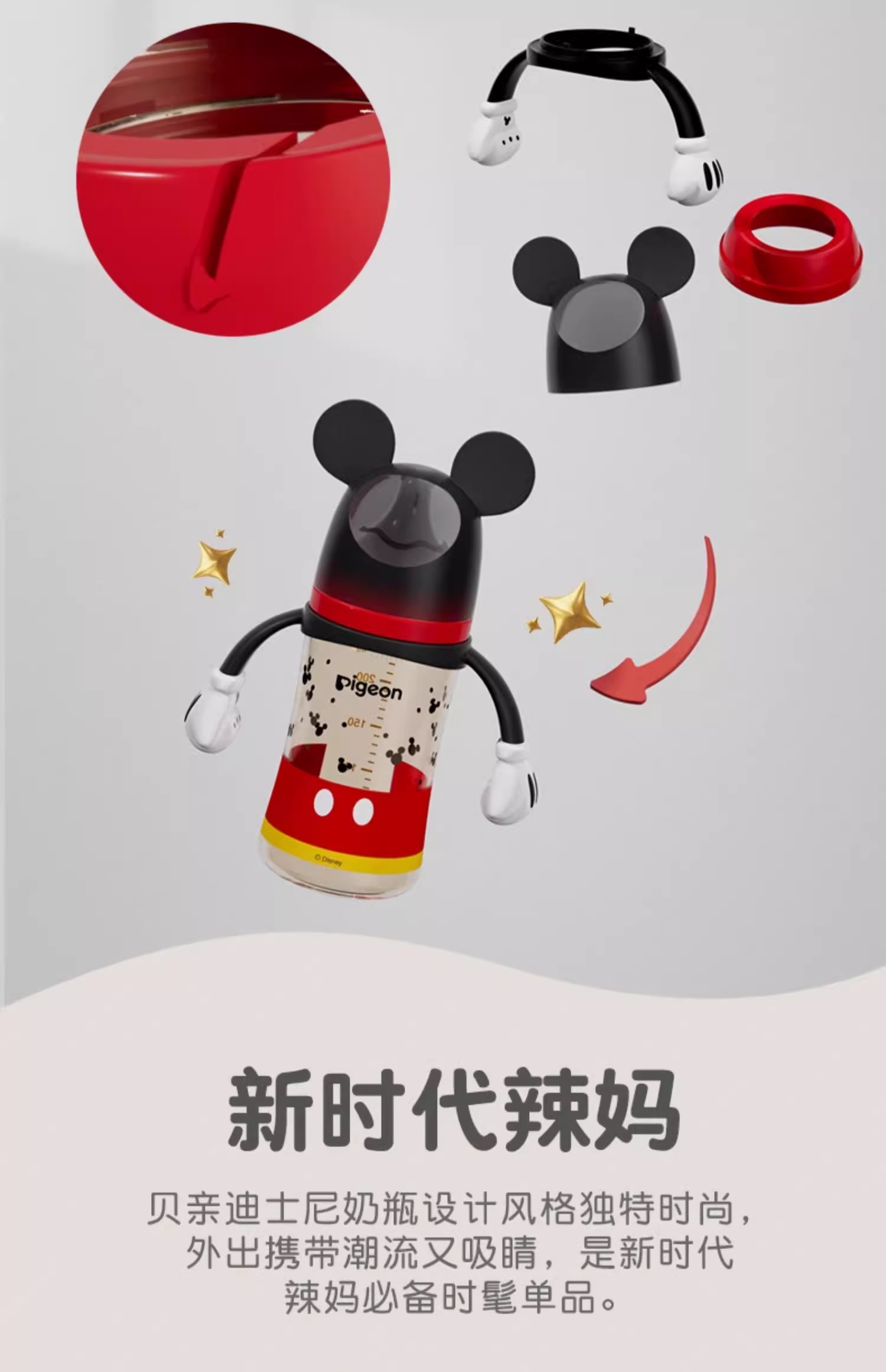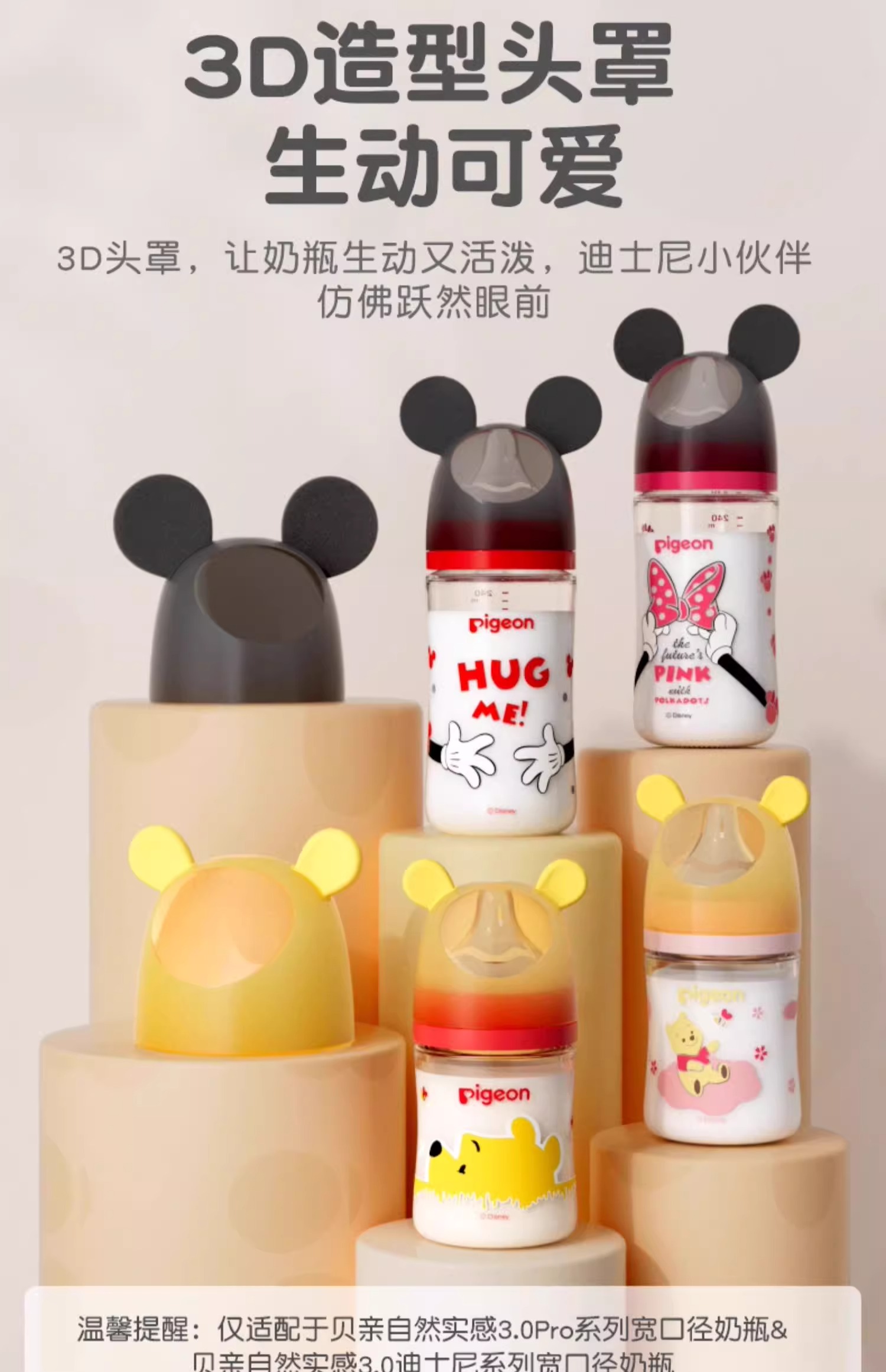 【官方自营】PIGEON/贝亲迪士尼自然实感Ⅲ宽口径奶瓶盖帽组(米奇-蓝)
