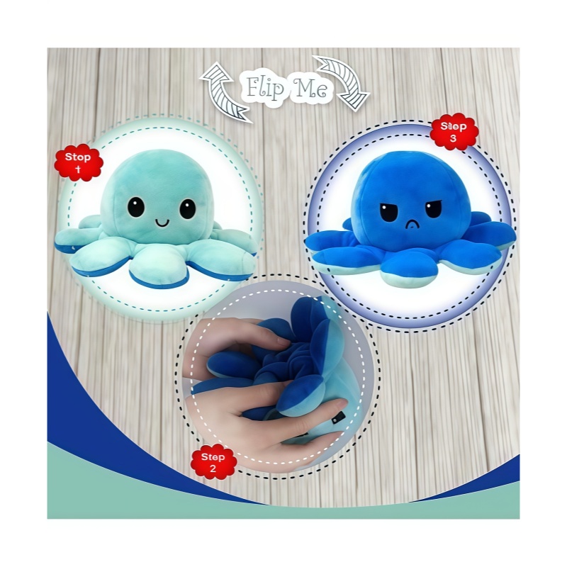 双面情绪章鱼,独特的翻转设计为你带来不同的视觉和感官体验,这款可爱的章鱼毛绒玩偶拥有独特的双面双色设计,可以轻松翻转成不同的颜色和表情。