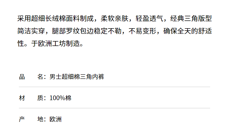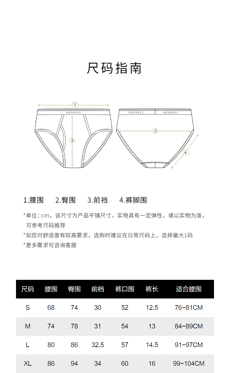 SUNSPEL男士精纺超细长绒棉全棉三角内裤