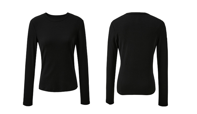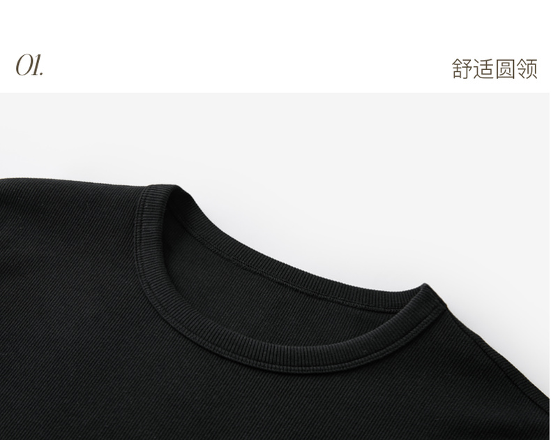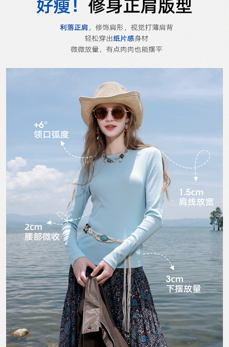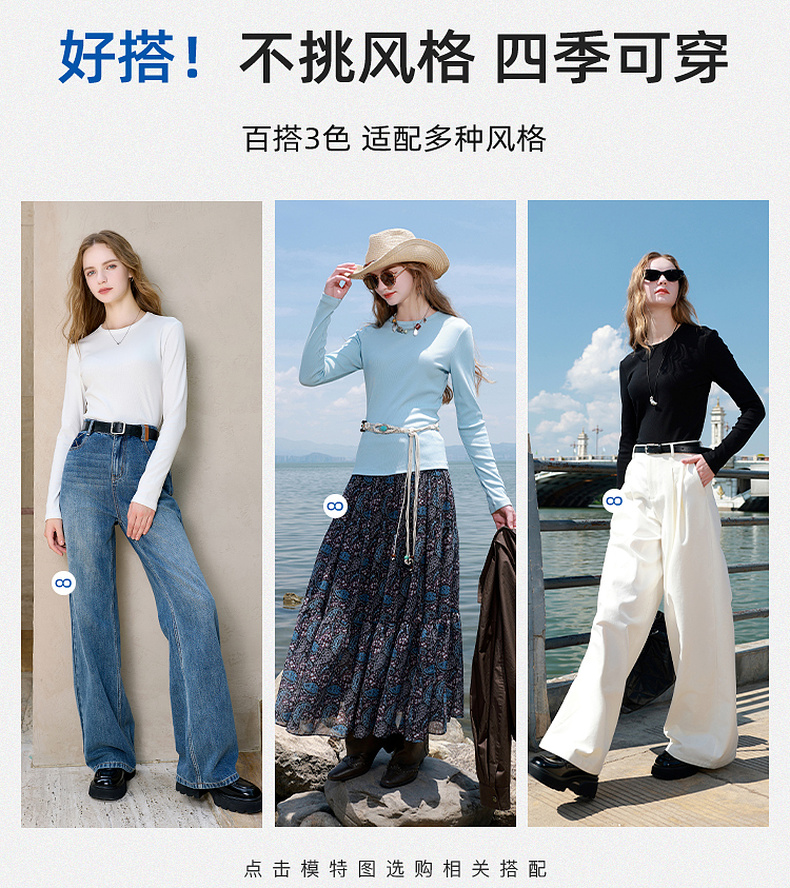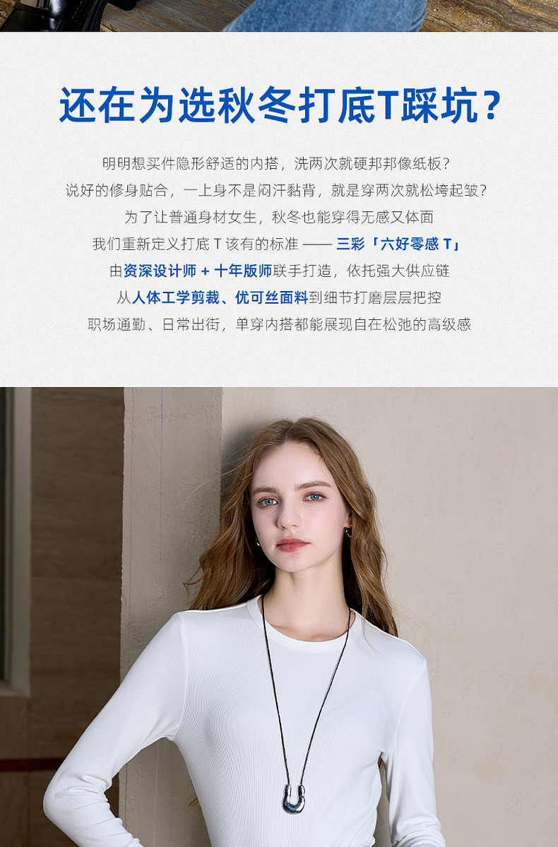 三彩2025秋季新款简约纯色圆领长袖T恤套头打底衫上衣修身Z