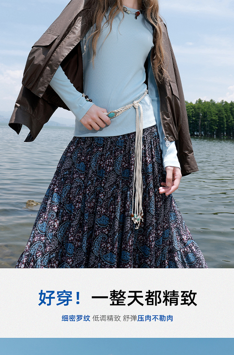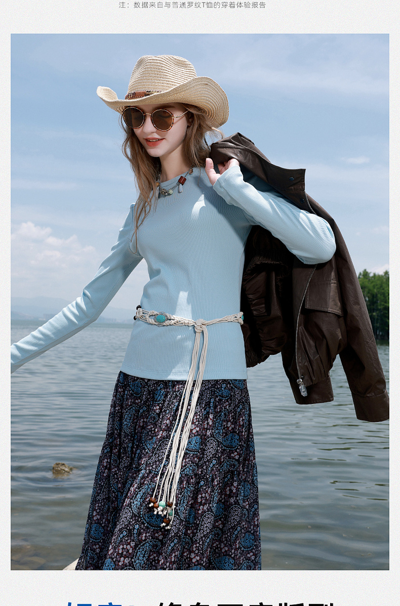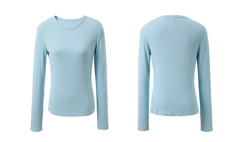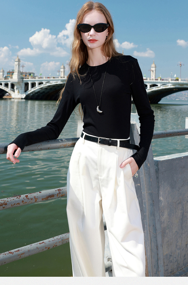 三彩2025秋季新款简约纯色圆领长袖T恤套头打底衫上衣修身Z