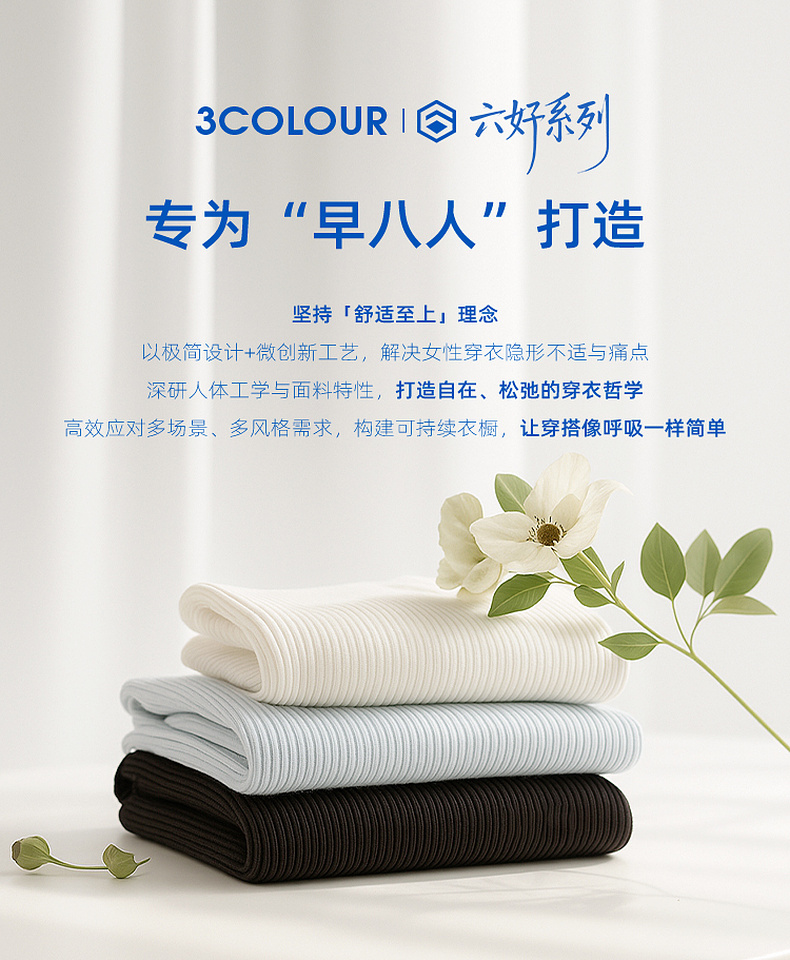 - 3COLOUR,一直致力于探索自我与时尚审美,用穿衣哲学折射生活主张,在流动中探寻恒久。