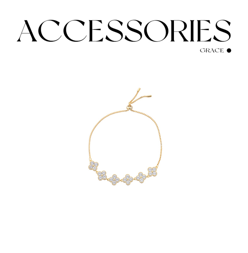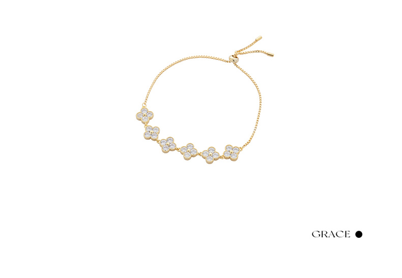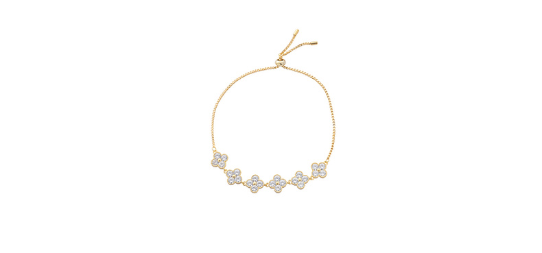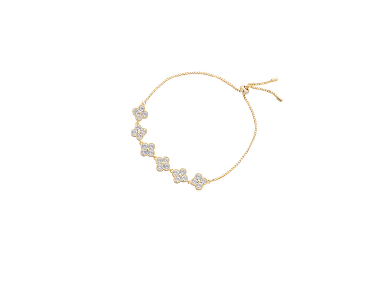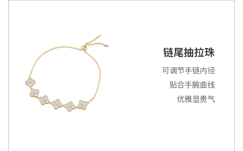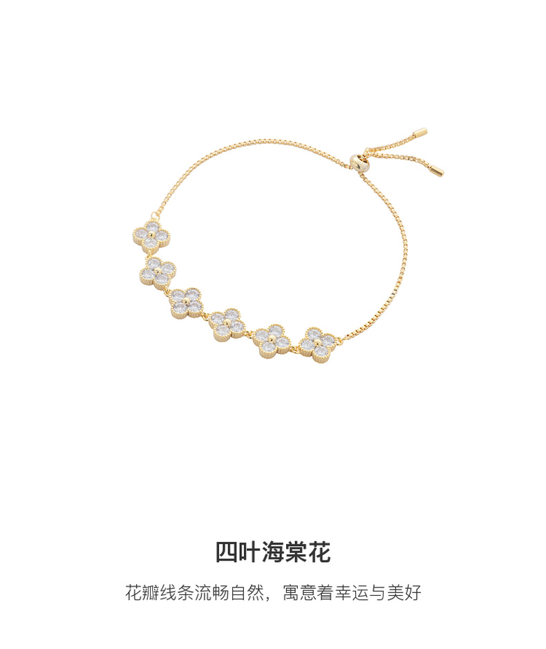 三彩2025新款国风四叶海棠花手链轻奢锆石幸运镀金抽拉珠甜美复古