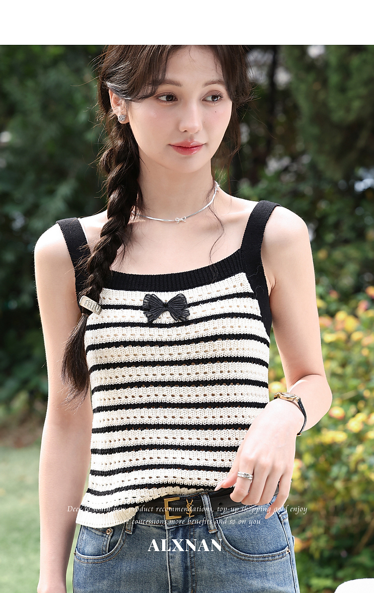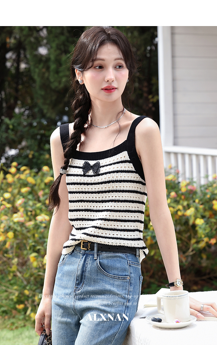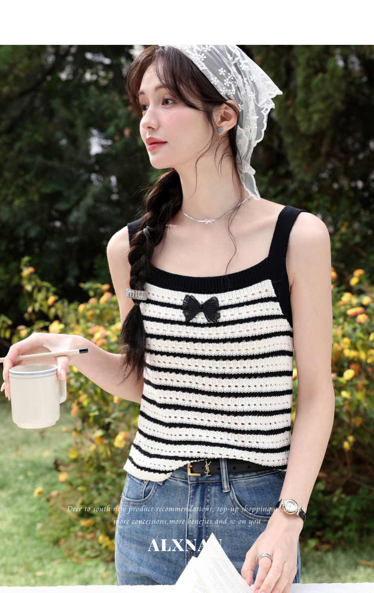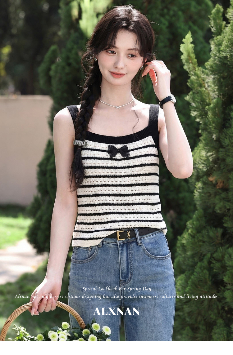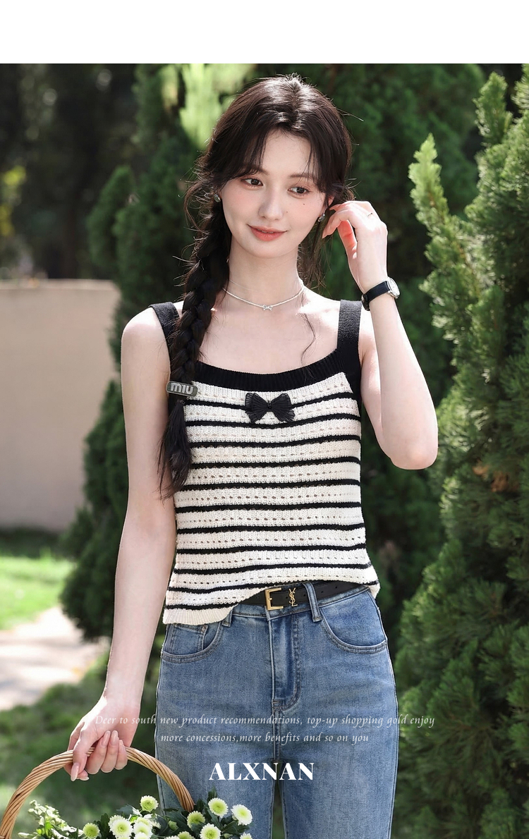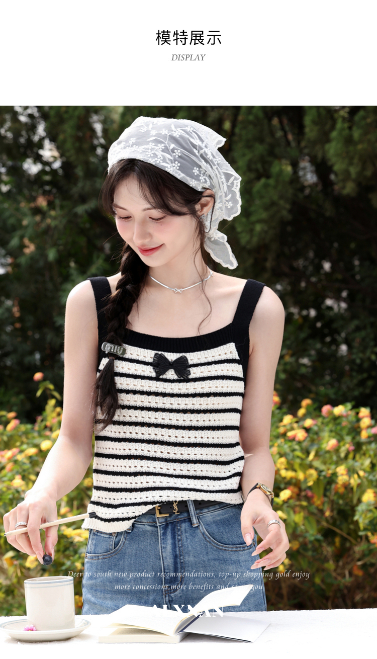 鹿向南「俏皮甜梦」黑白条纹吊带背心女夏季复古风减龄无袖上衣
