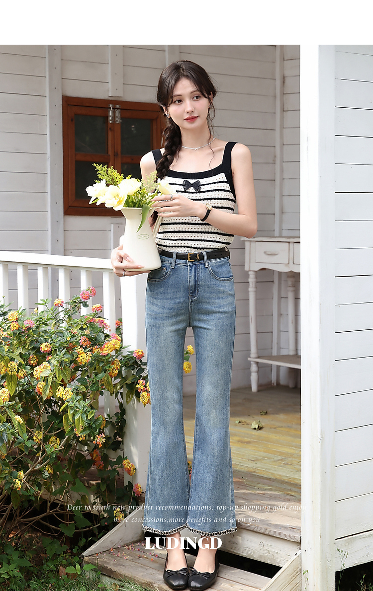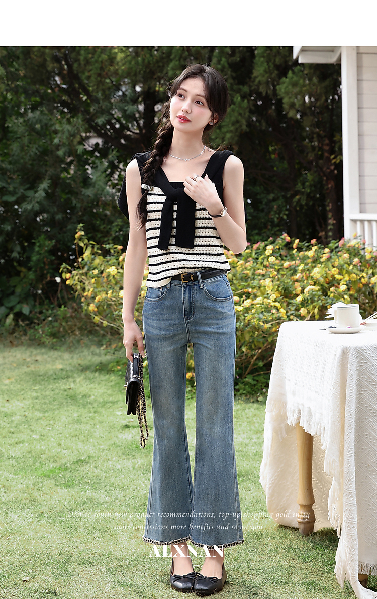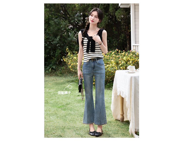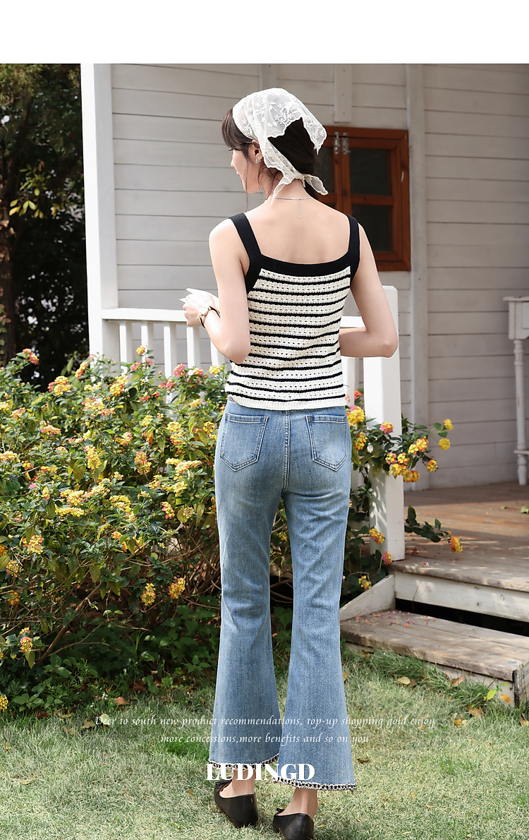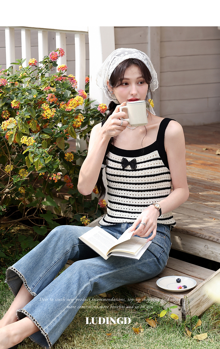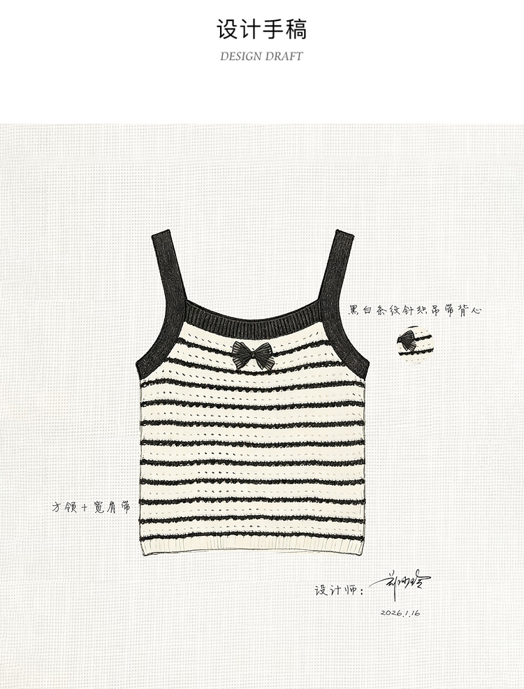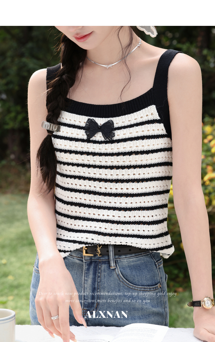 鹿向南「俏皮甜梦」黑白条纹吊带背心女夏季复古风减龄无袖上衣