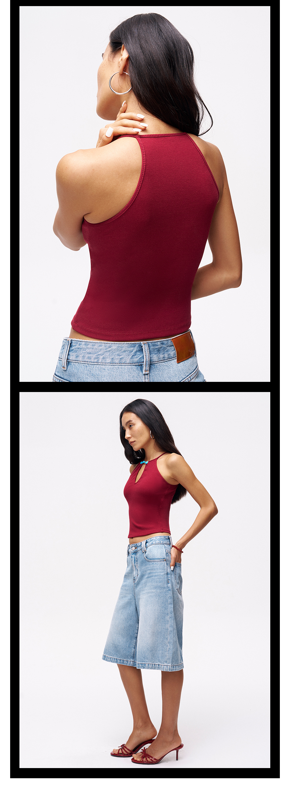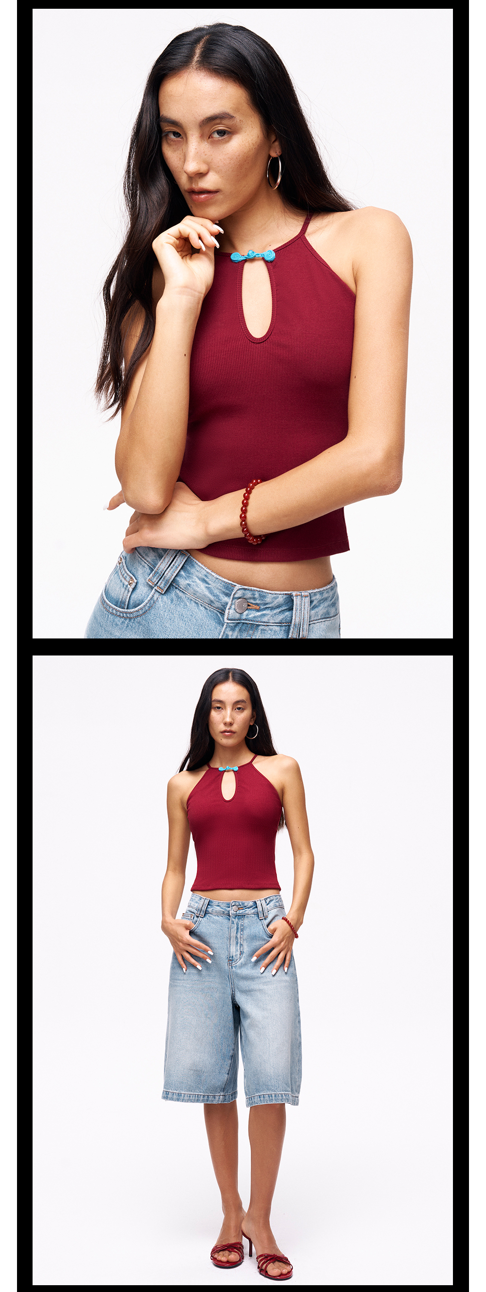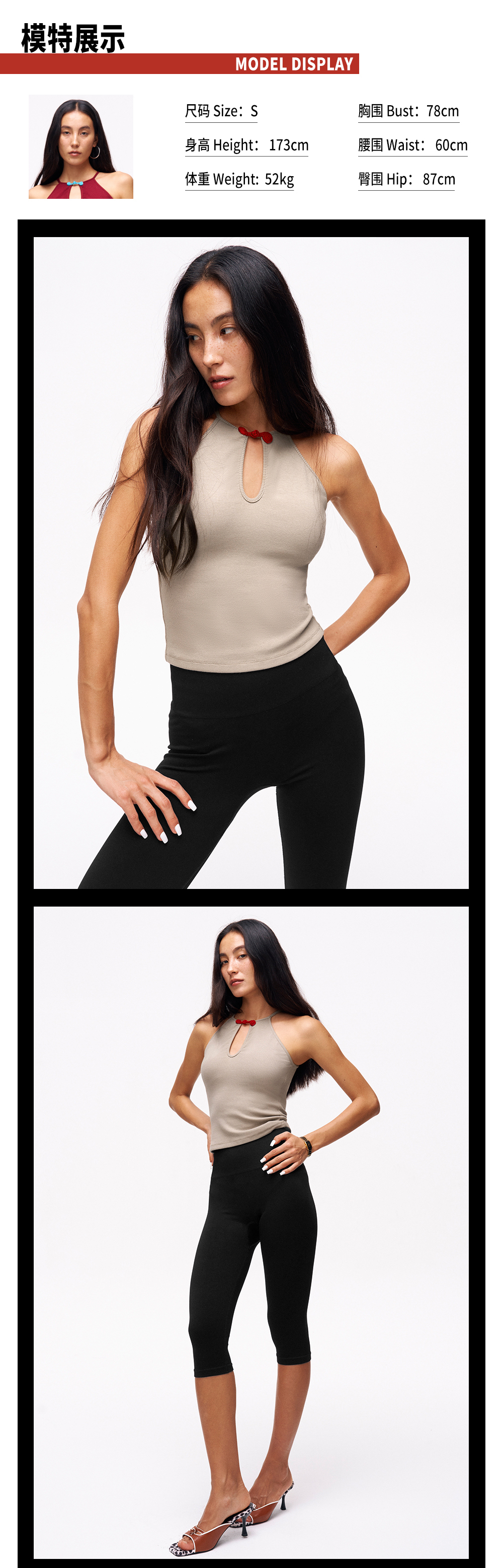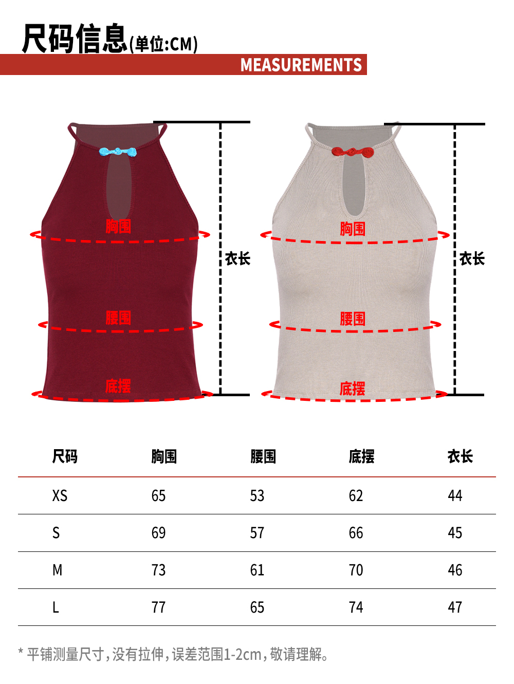 TR她热 朱砂痣 卡其色红色新中式盘扣镂空带胸垫挂脖背心吊带