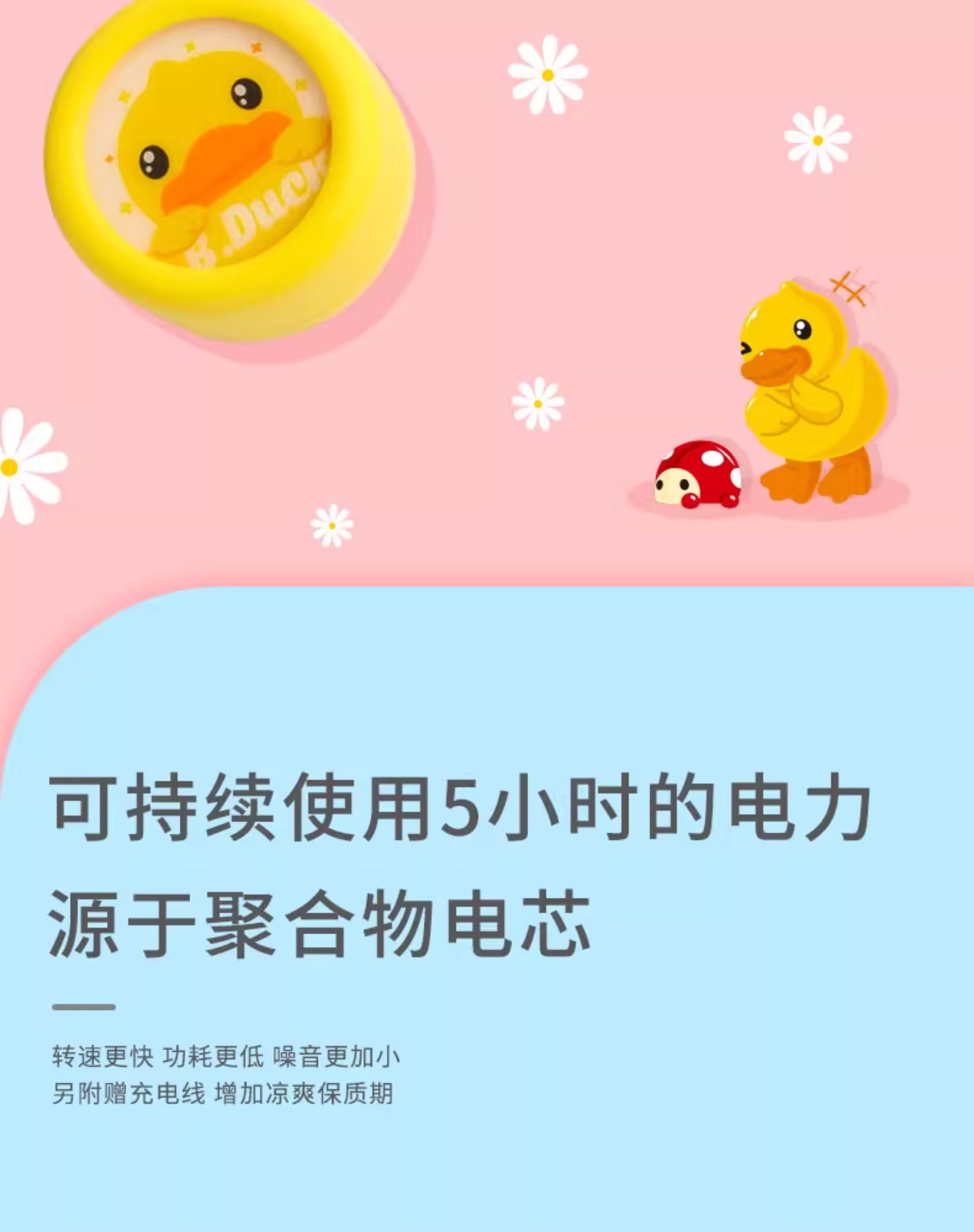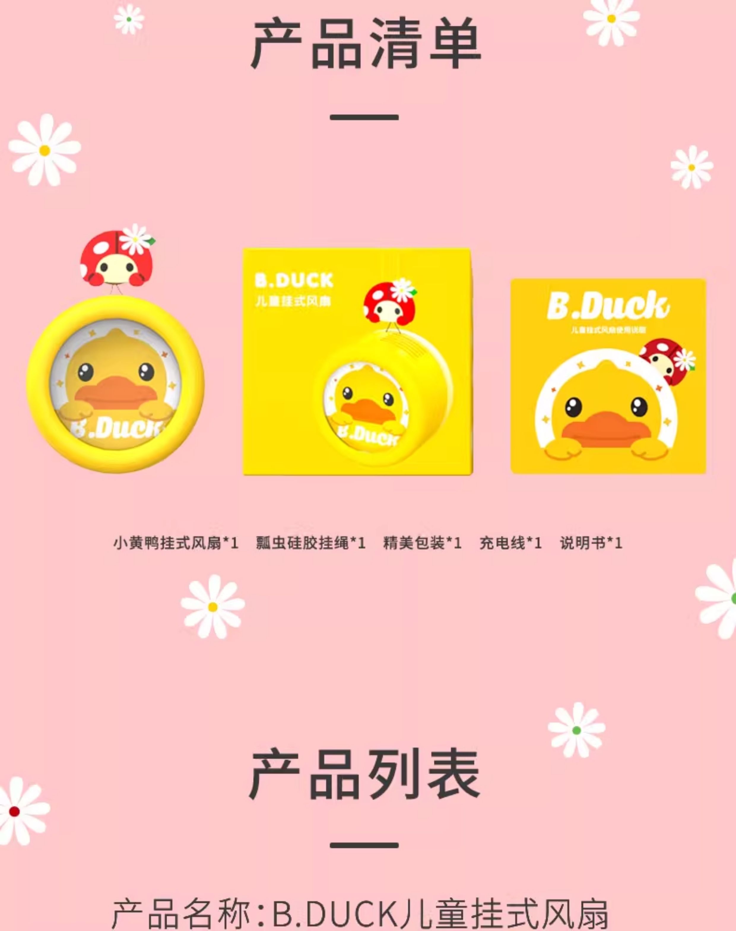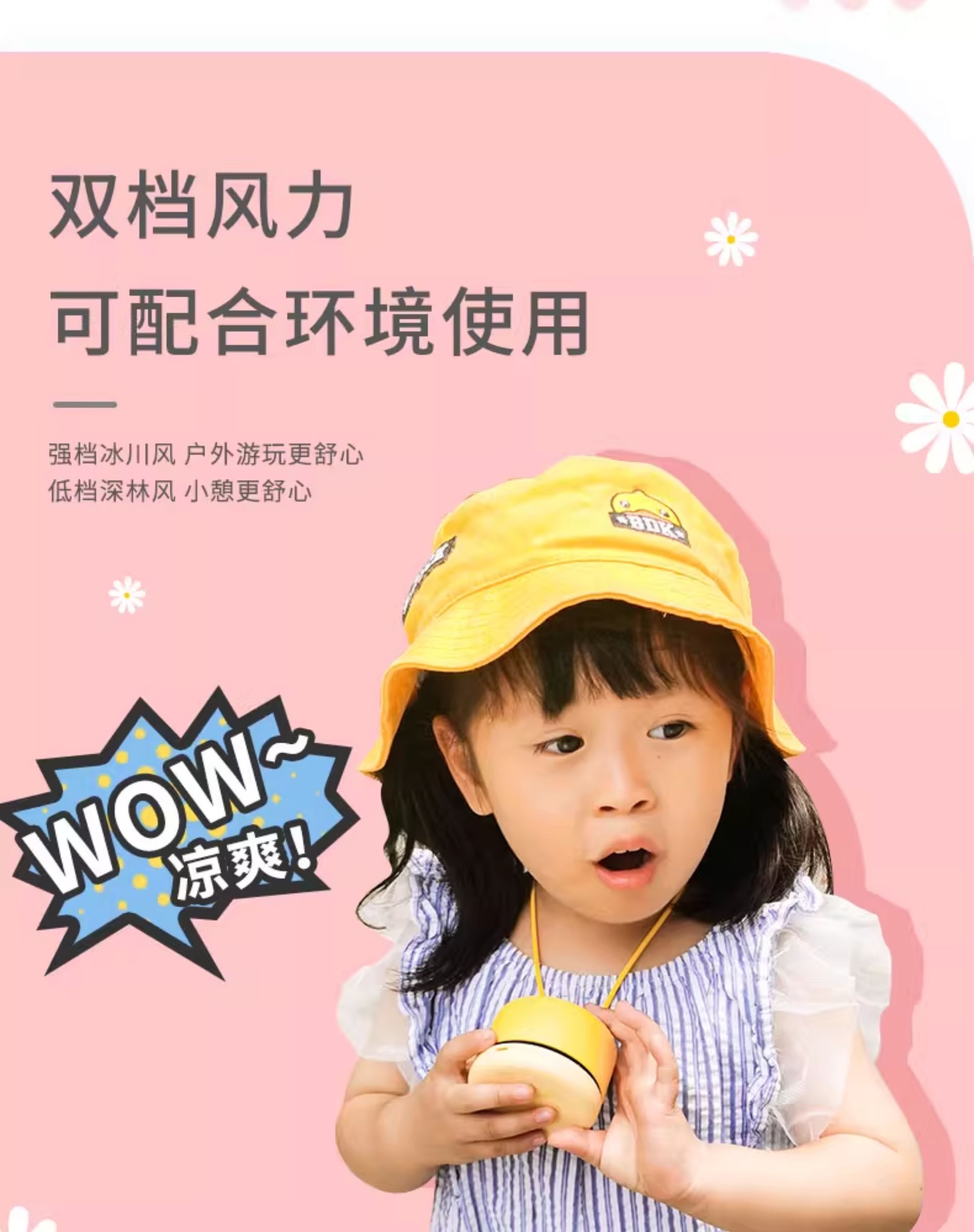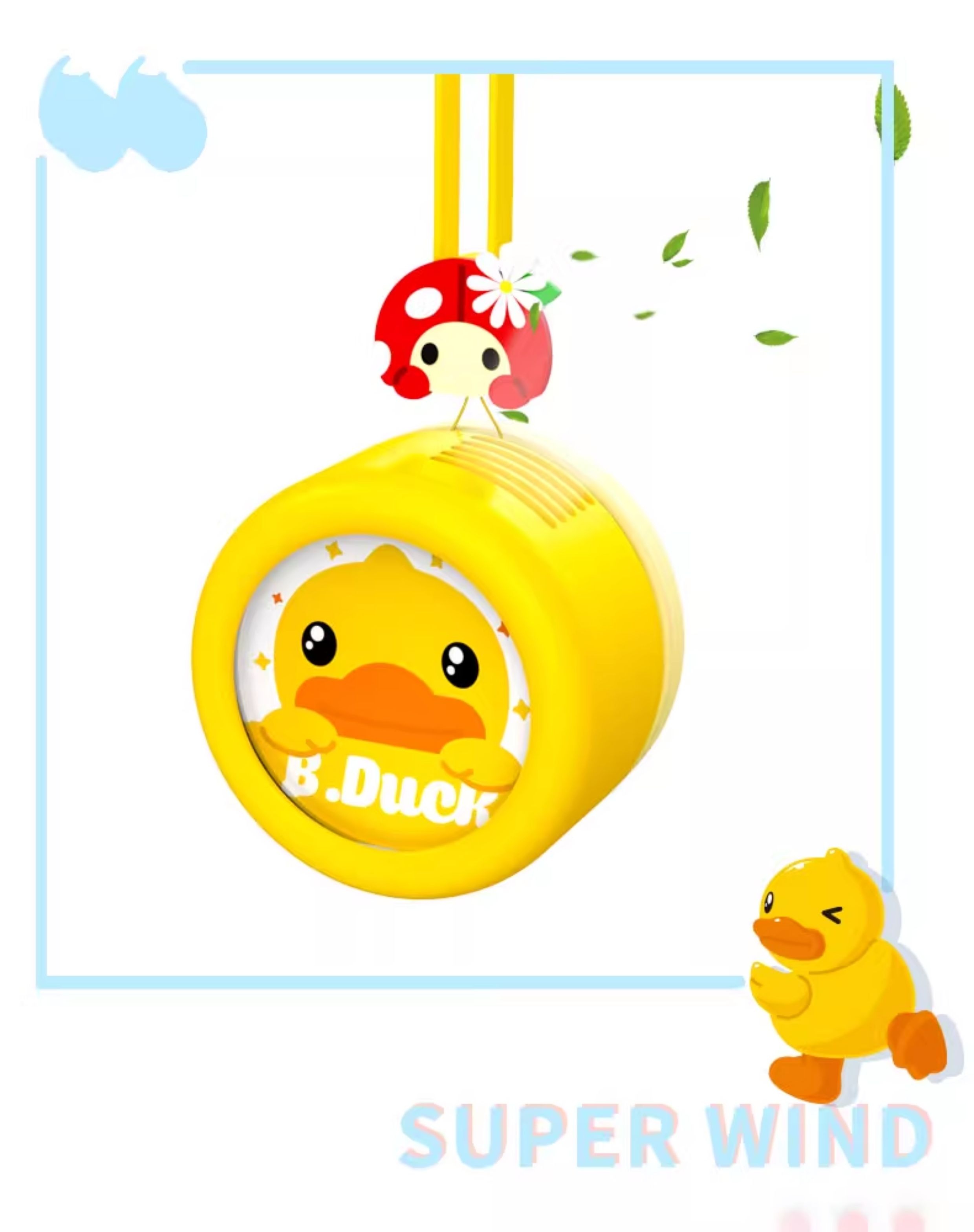 B.Duck小黄鸭 挂脖小风扇 两档风力 USB充电