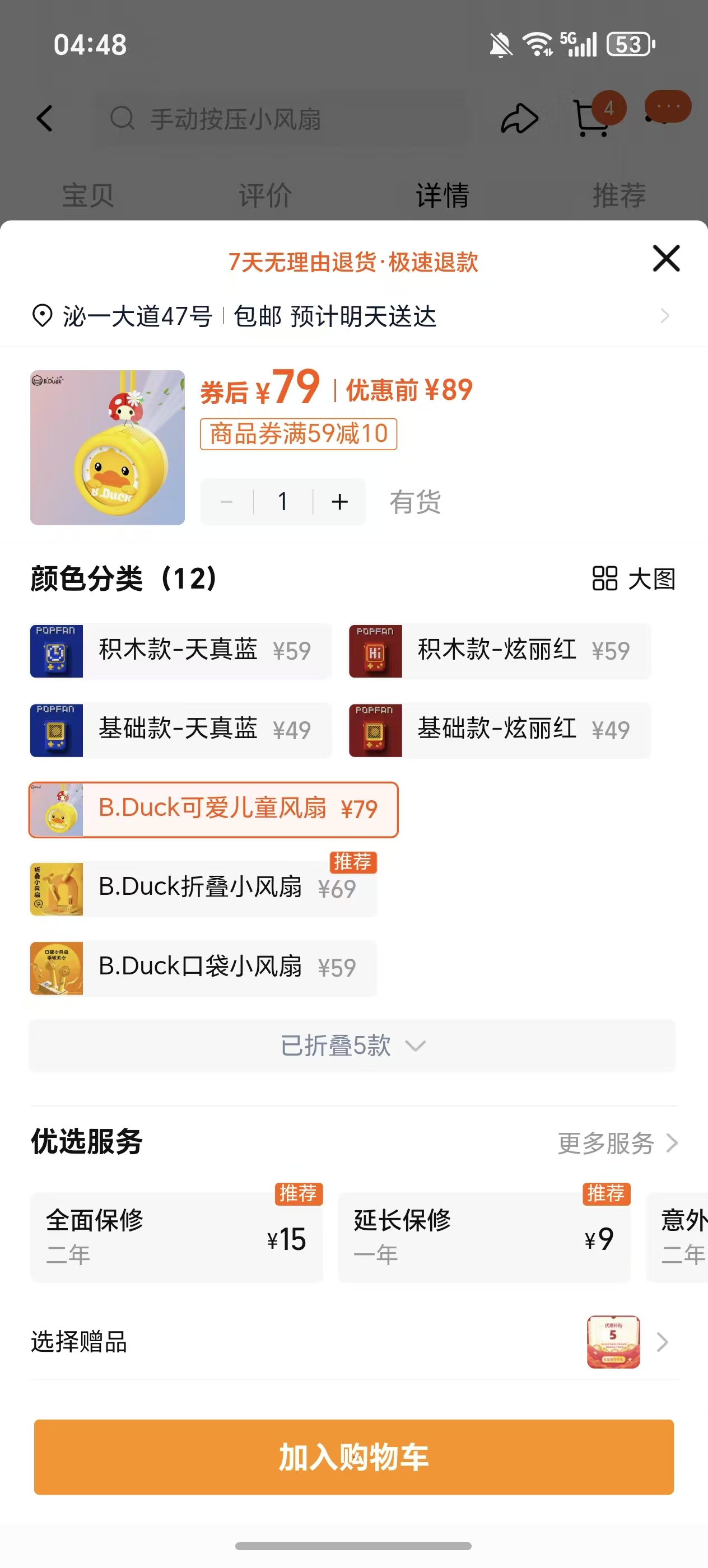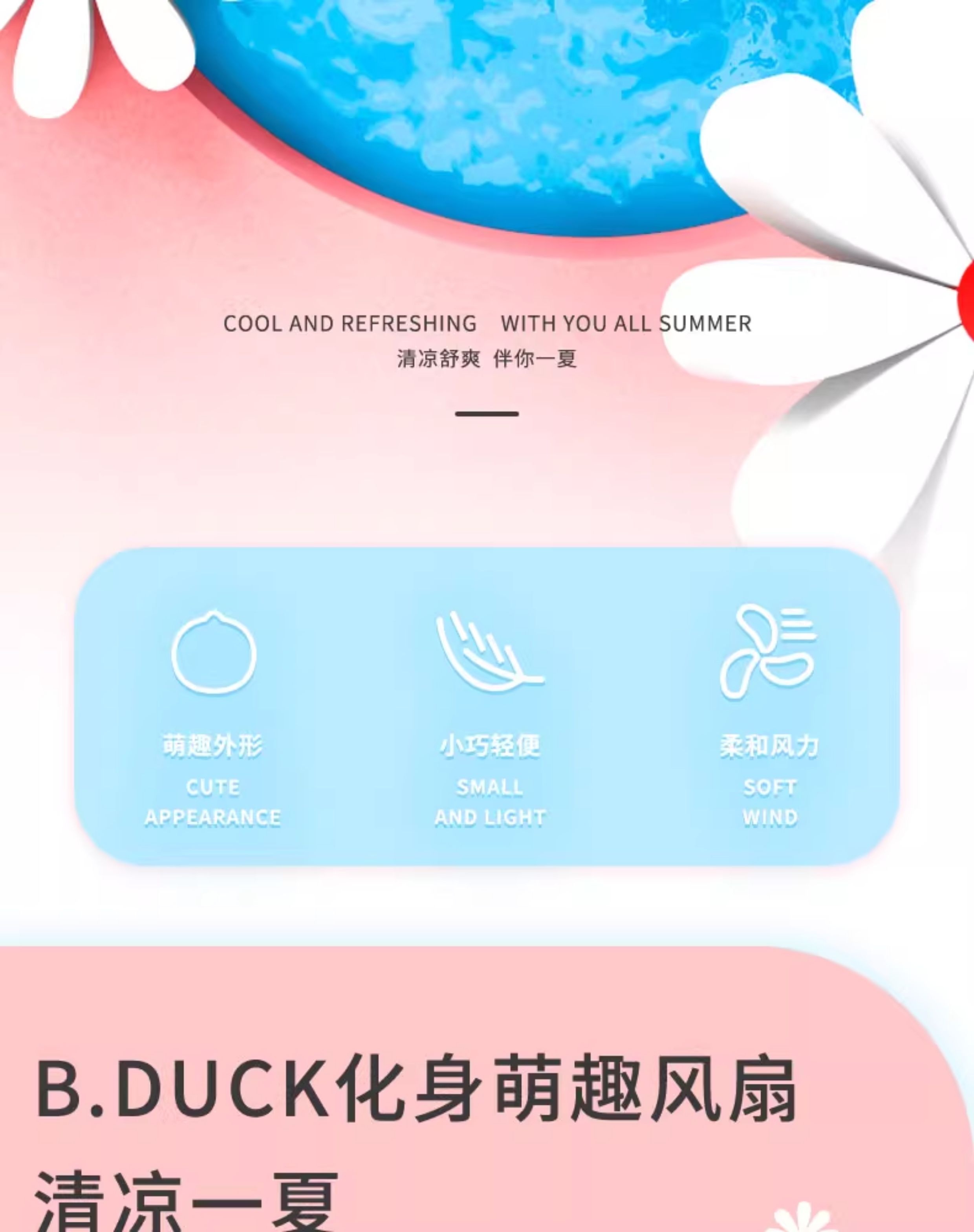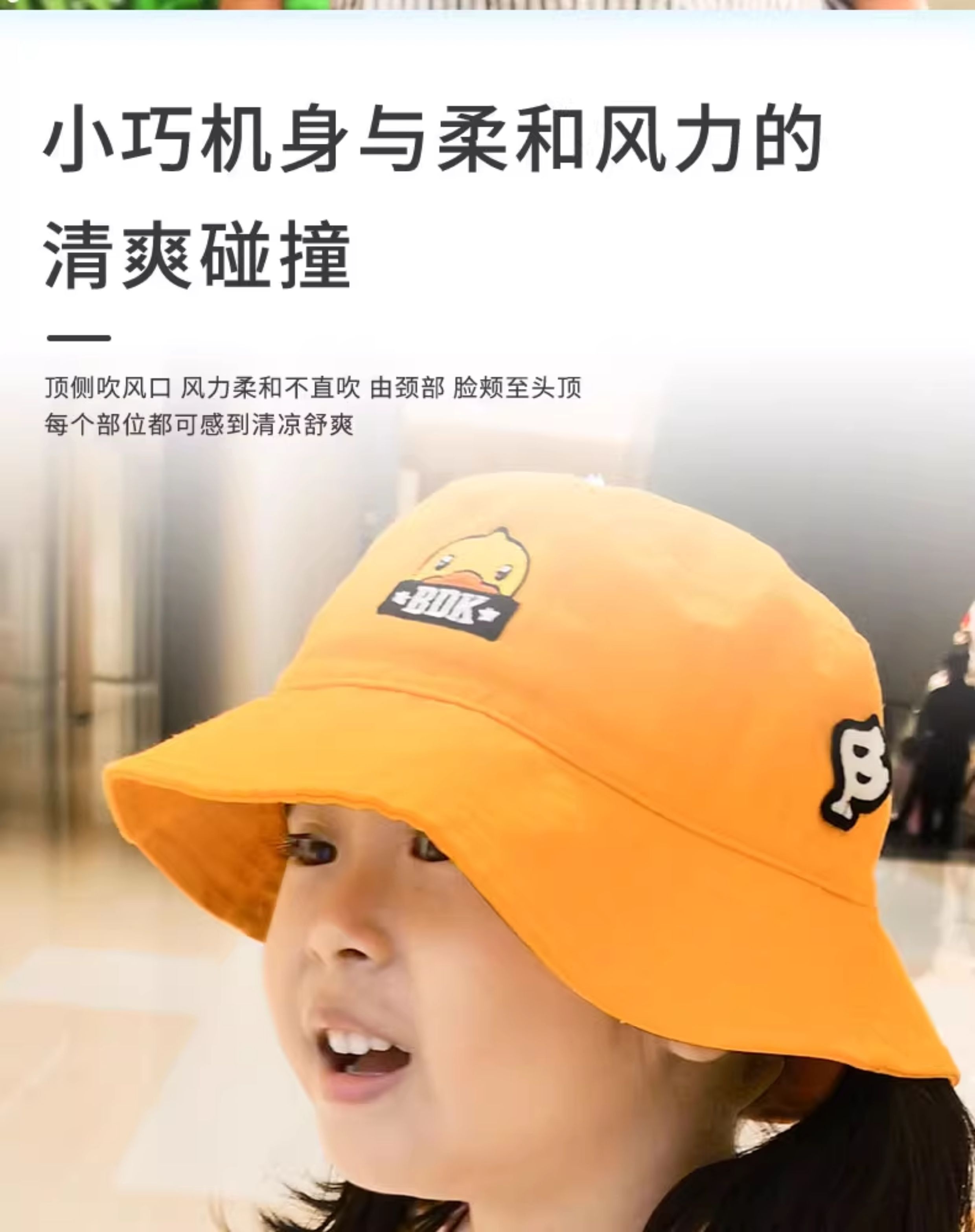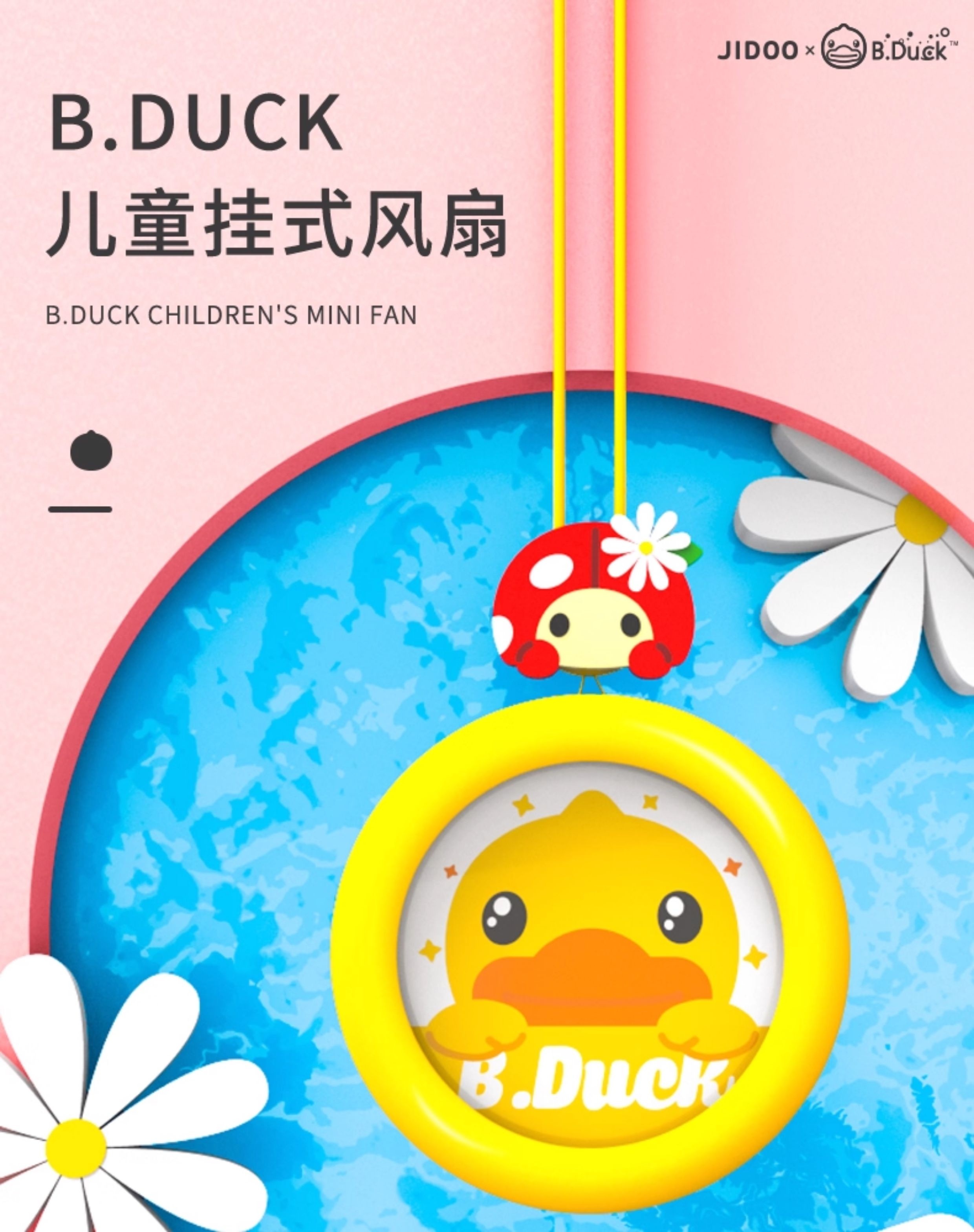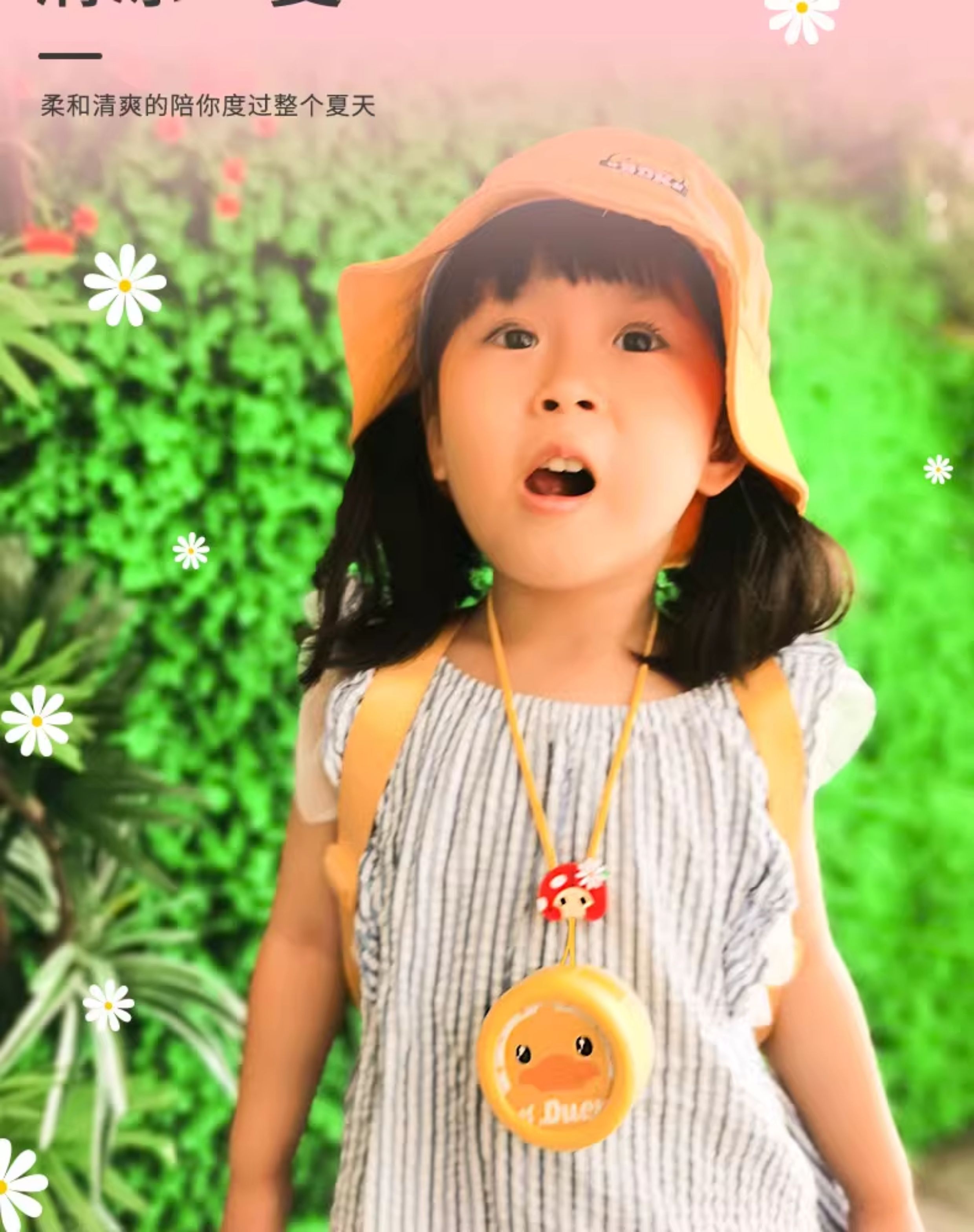 B.Duck小黄鸭 挂脖小风扇 两档风力 USB充电