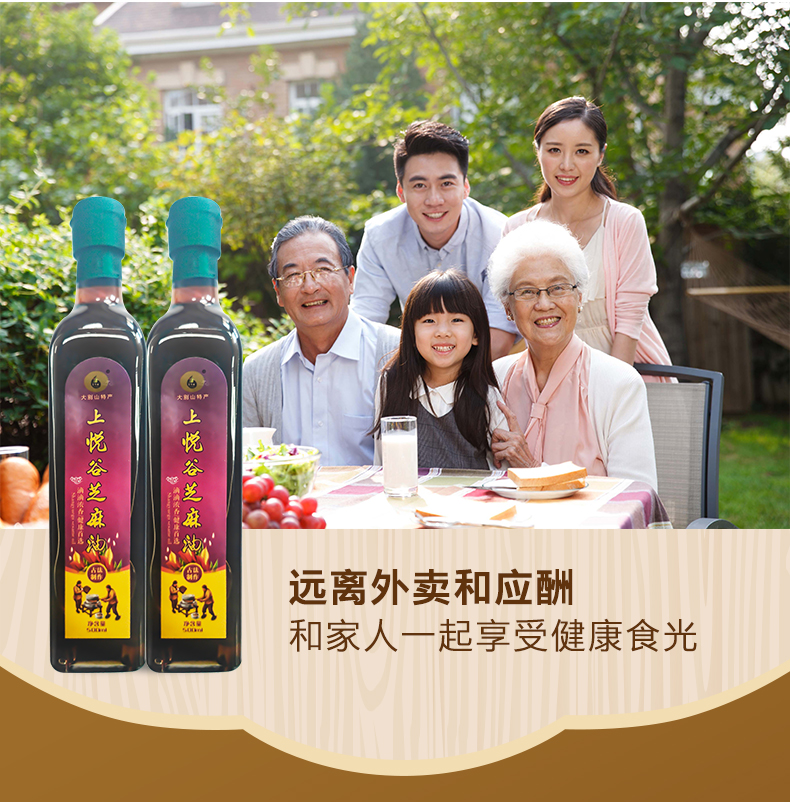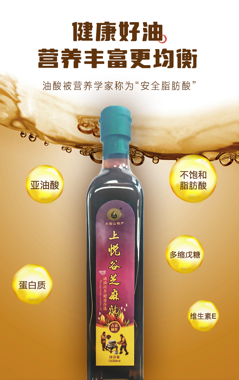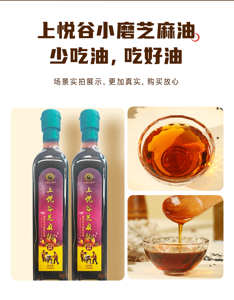 【上悦谷】芝麻油500ml*2瓶 100%纯芝麻