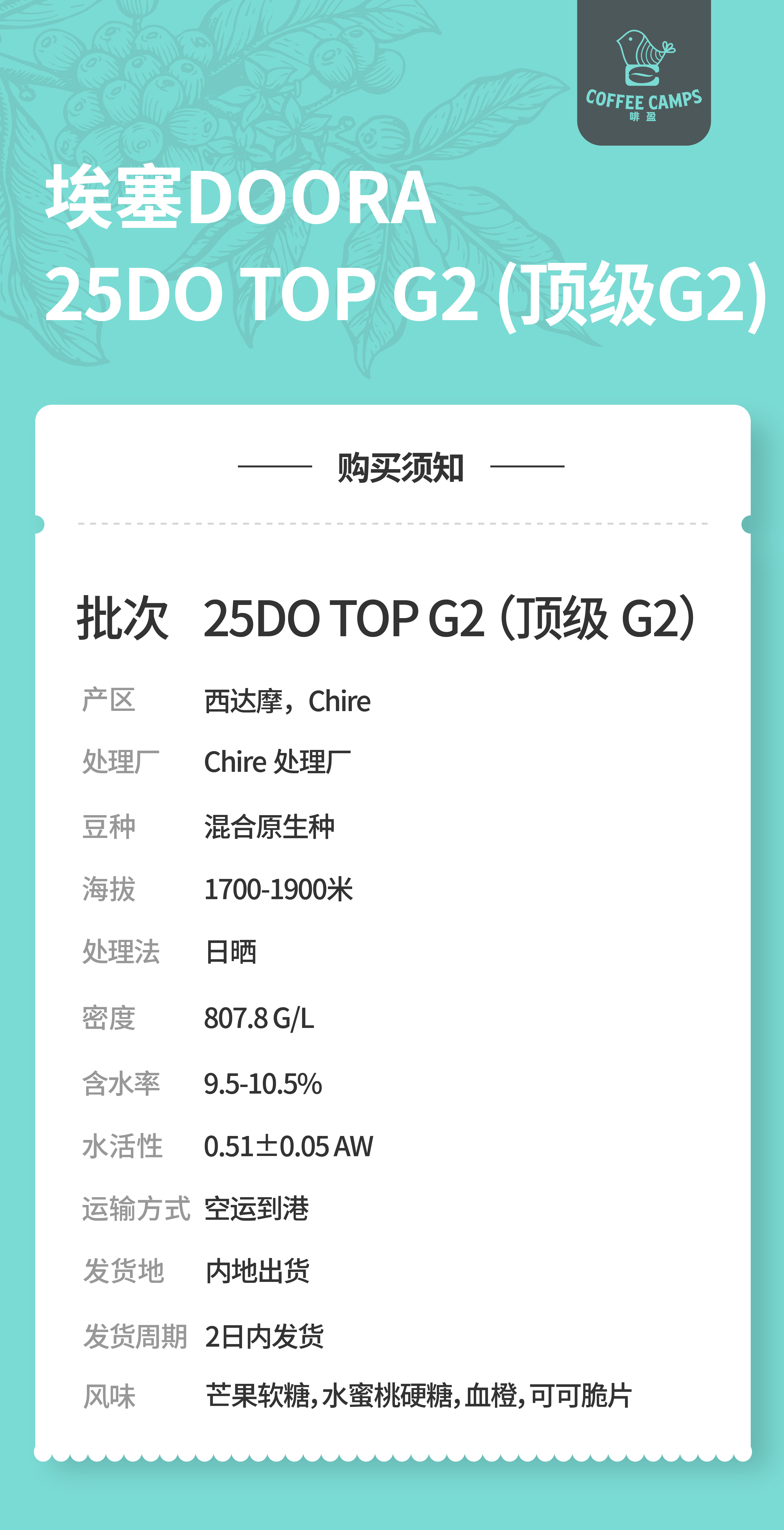 25产季埃塞 Doora Top G2 顶级G2 日晒 (生豆)空运批次