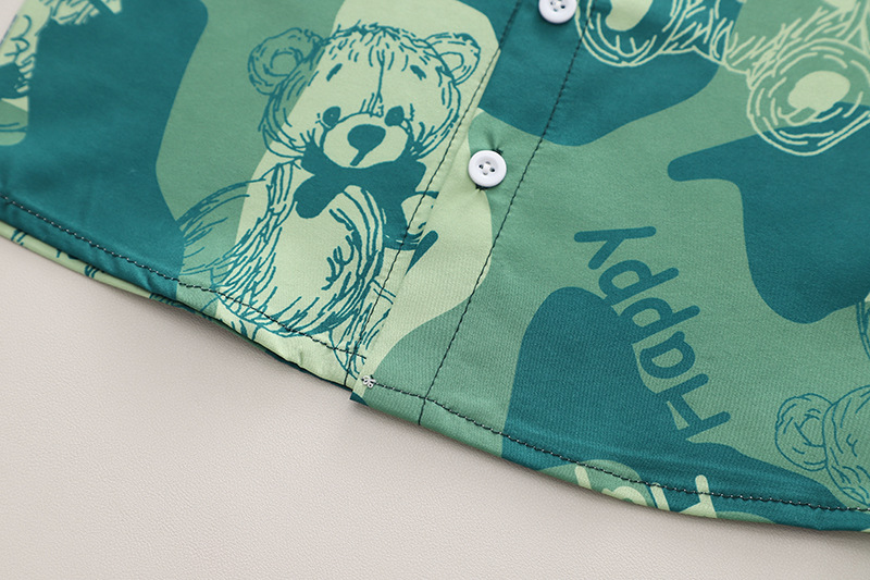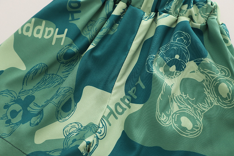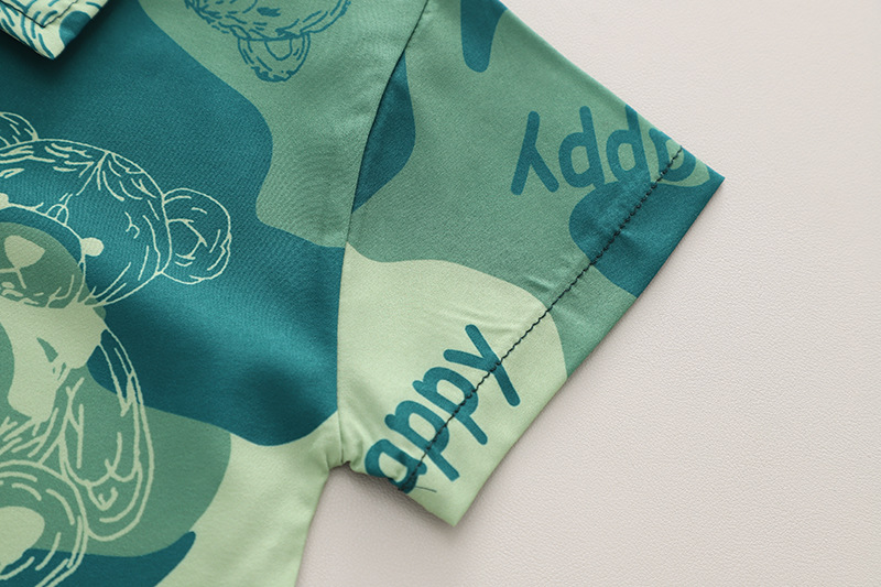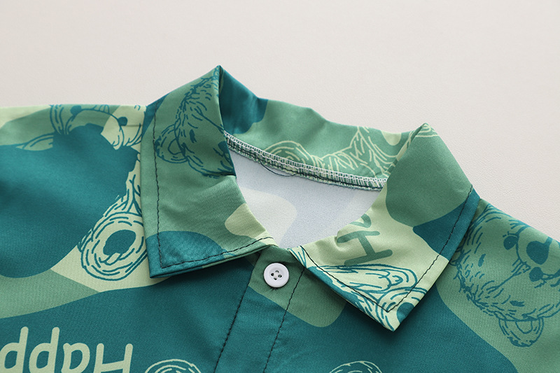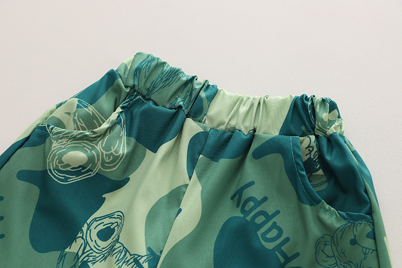 A类夏季新款满印衬衫童装男女童两件套沙滩装短裤夏装儿童套装