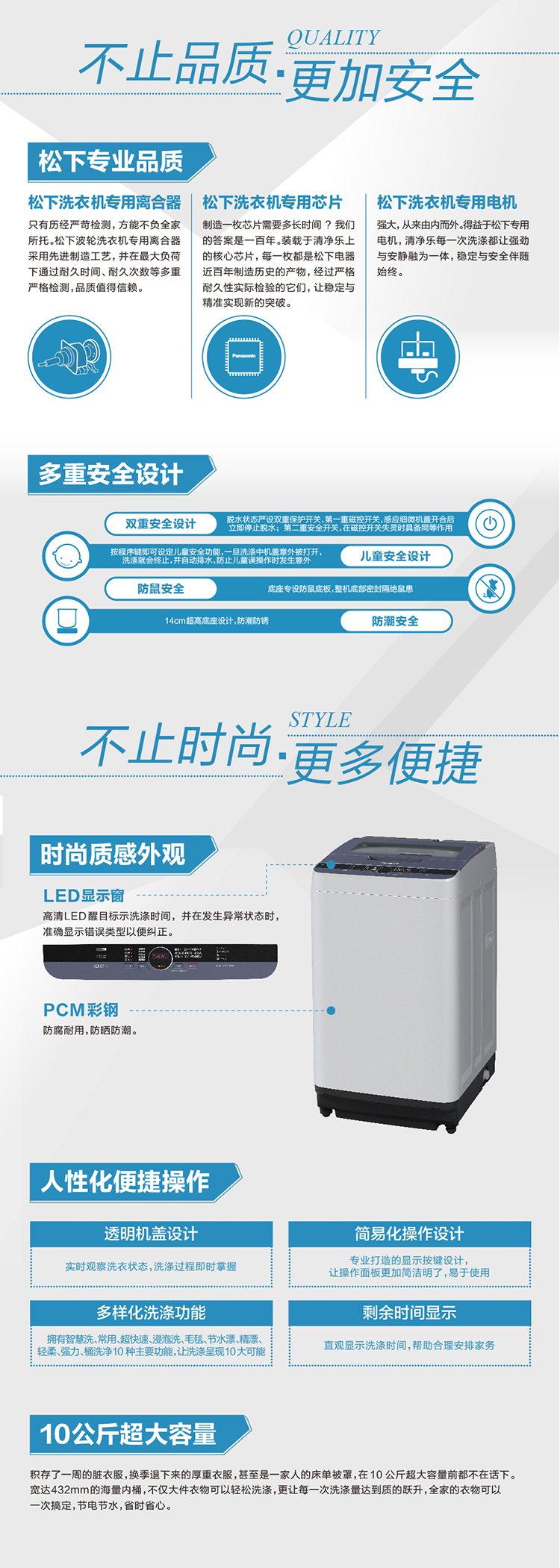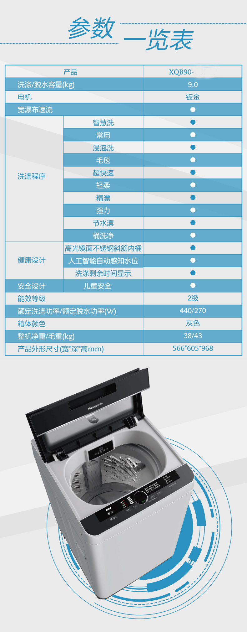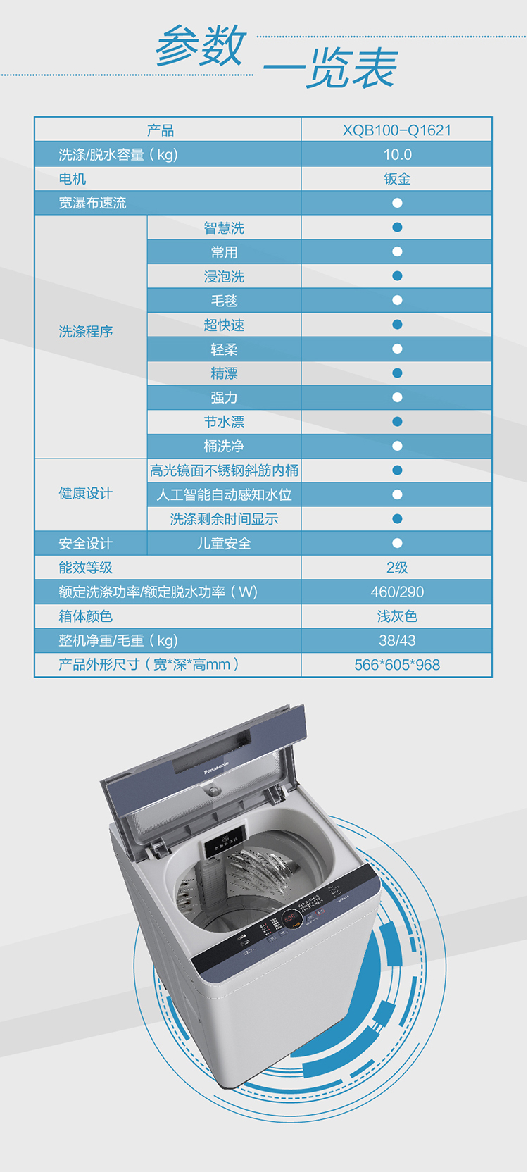 松下(panasonic)全自动波轮洗衣机家用智能称重节能节水宽瀑速流升级玻璃盖板大容量 10公斤 XQB100-Q1E2A玻璃面板10公斤