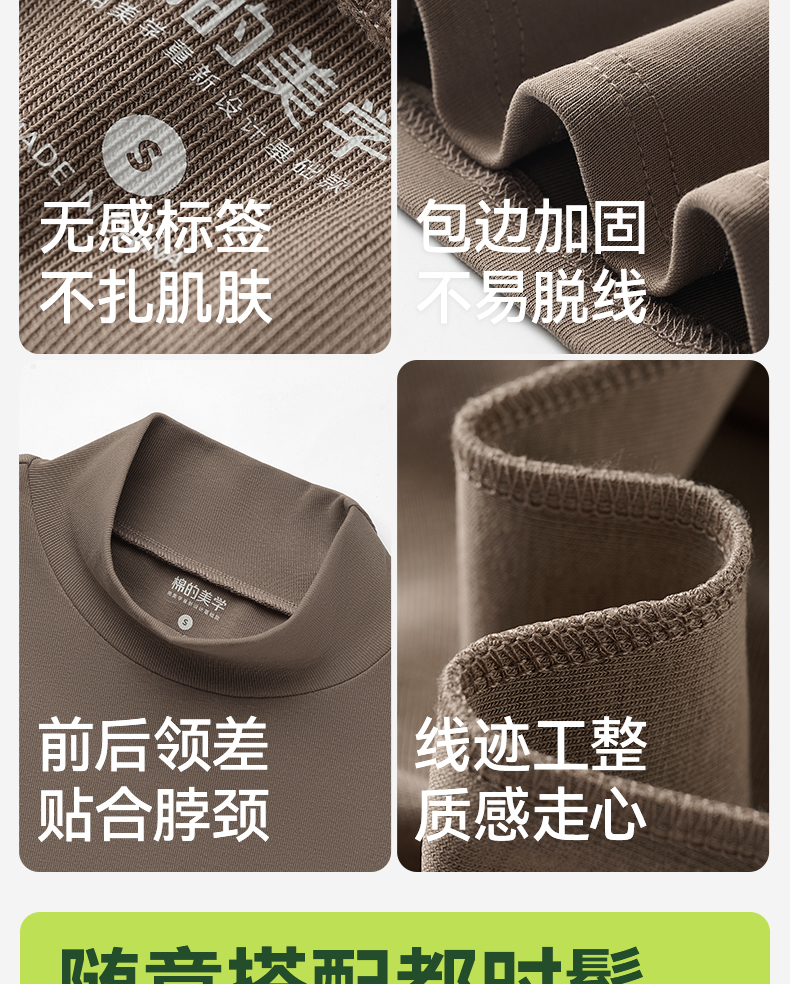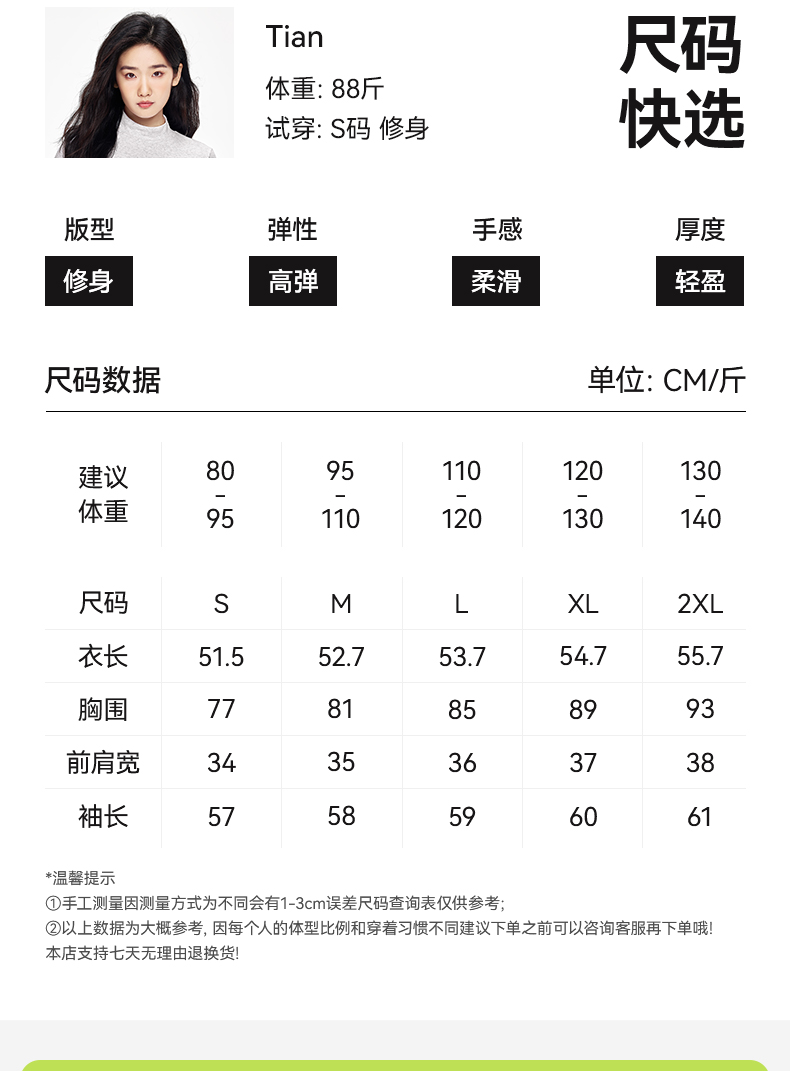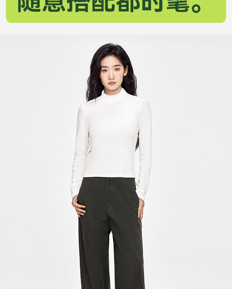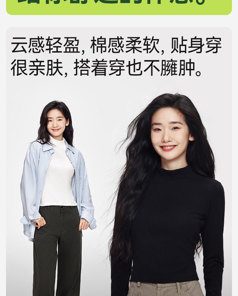 「棉的美学」白色高领打底衫女内搭洋气早秋修身显瘦长袖薄款上衣