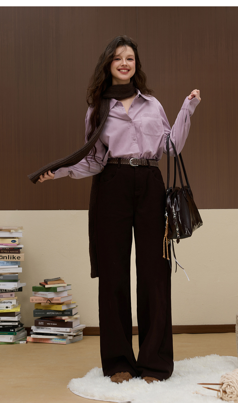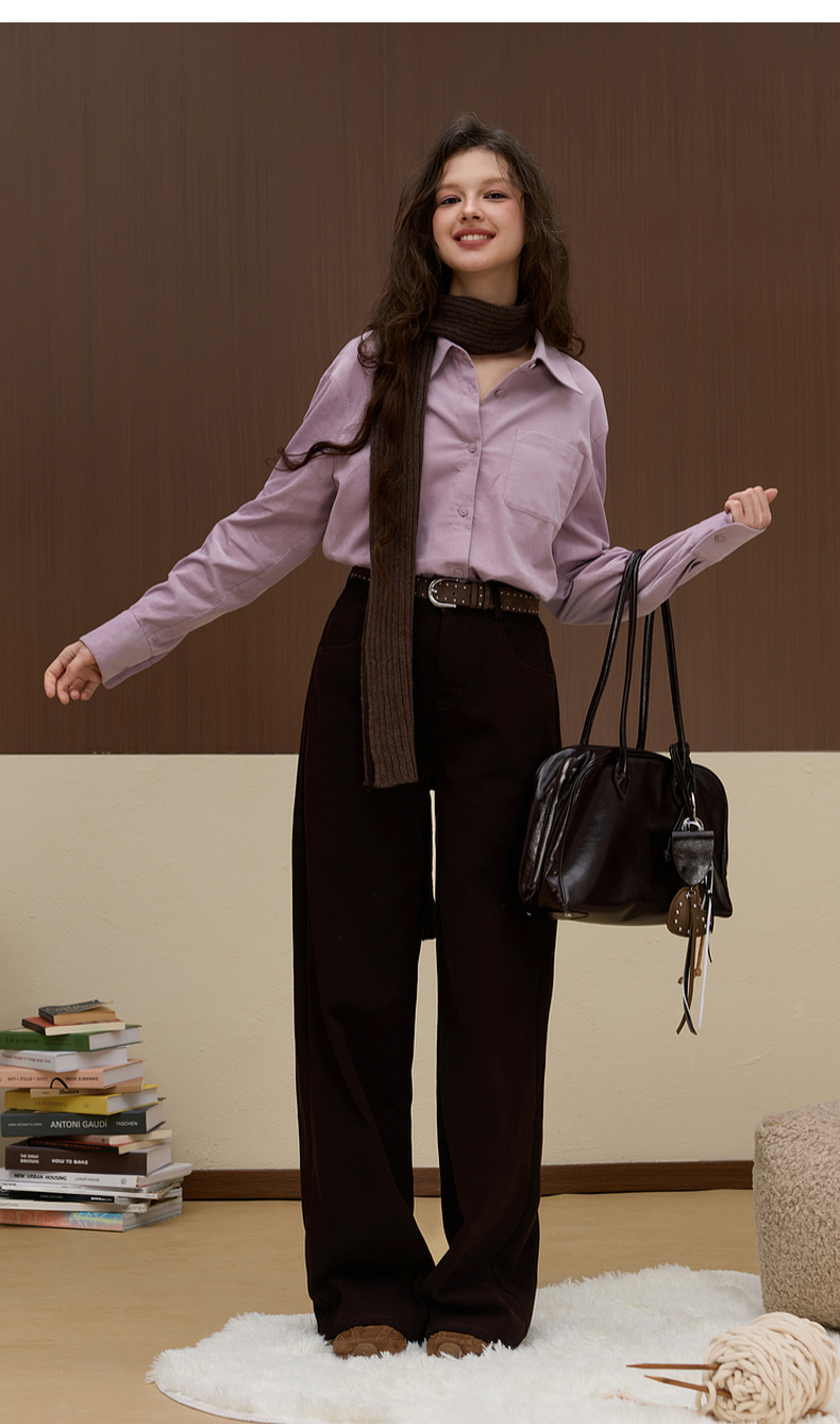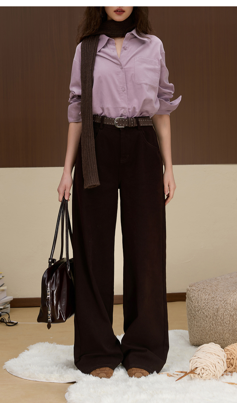 三彩独醒2025冬季新款复古收腰牛仔裤休闲阔腿裤一体绒磨毛长裤F