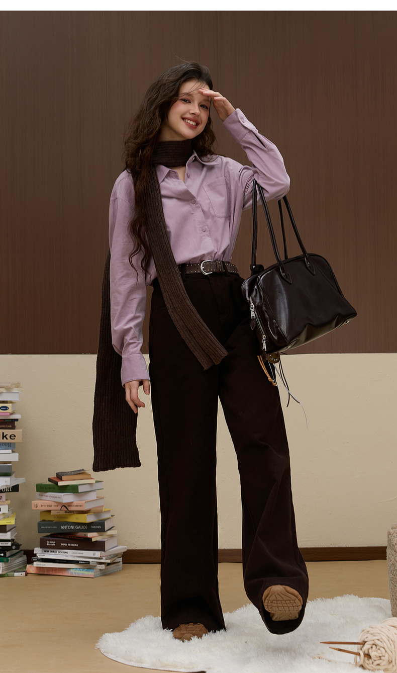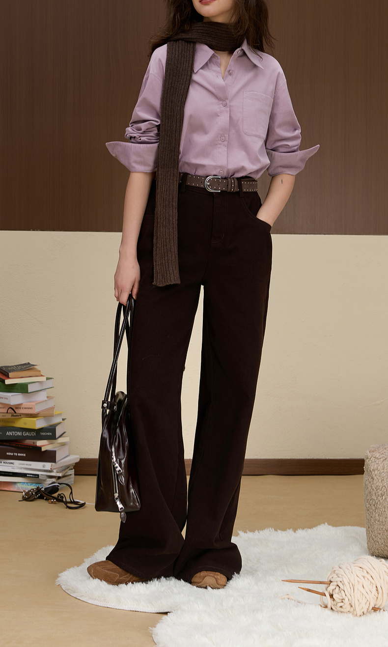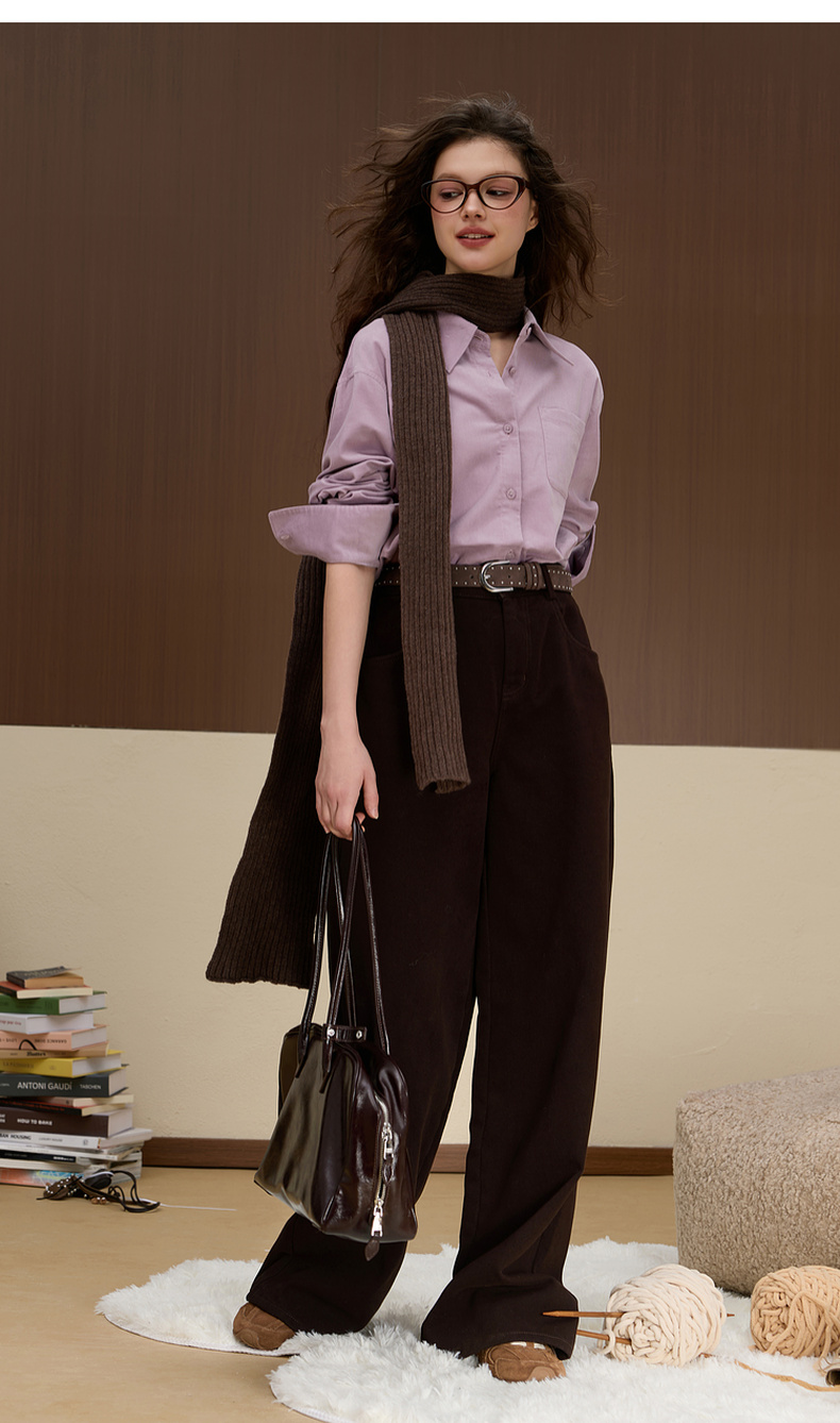 三彩独醒2025冬季新款复古收腰牛仔裤休闲阔腿裤一体绒磨毛长裤F
