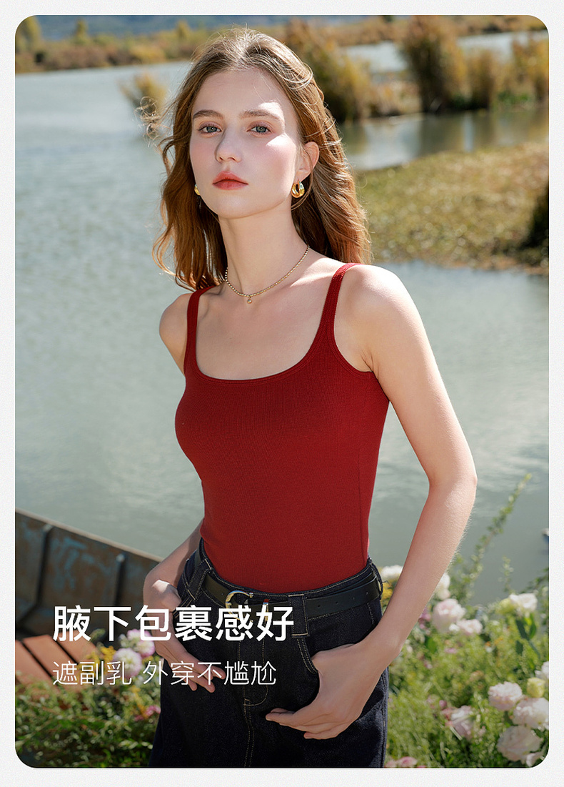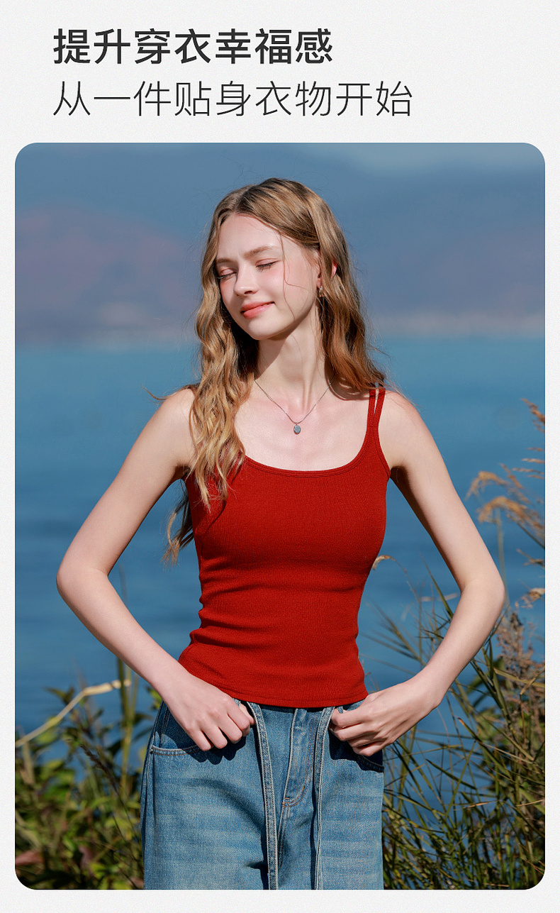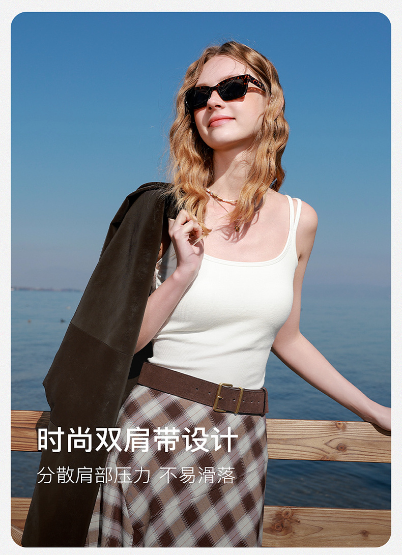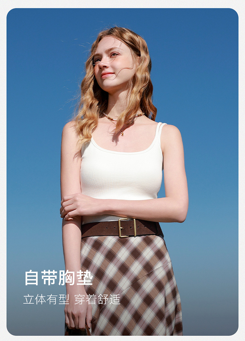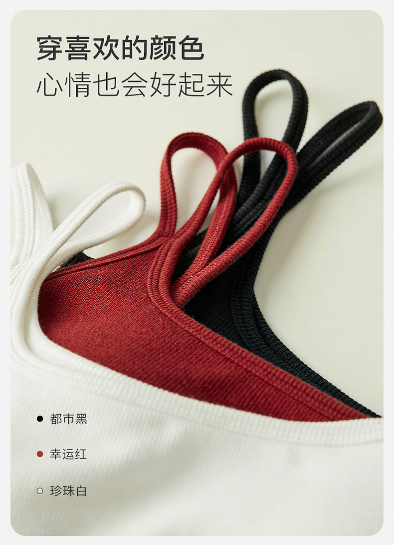 三彩2026春季新款坑条背心自带胸垫吊带修身短款打底内搭M