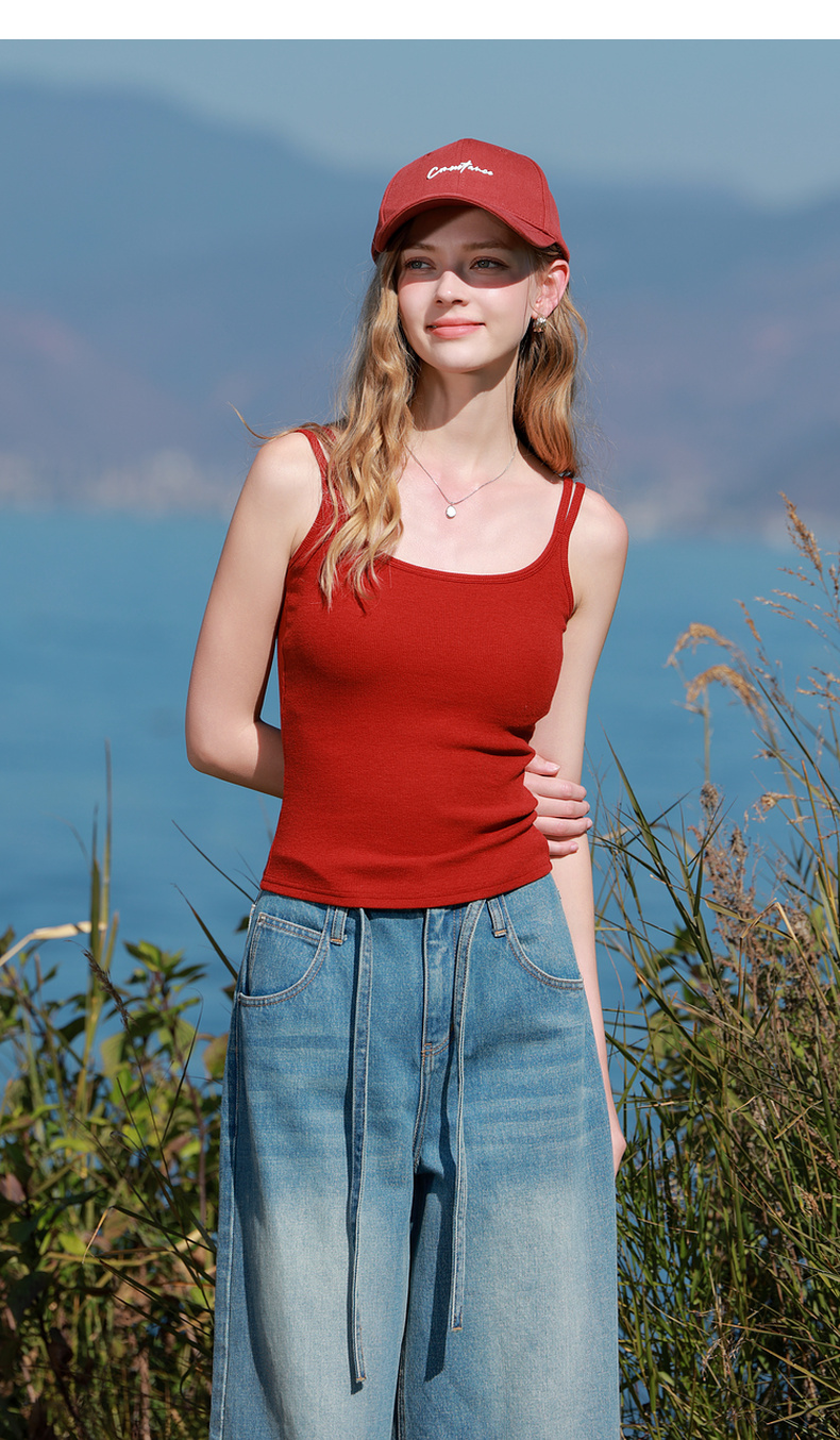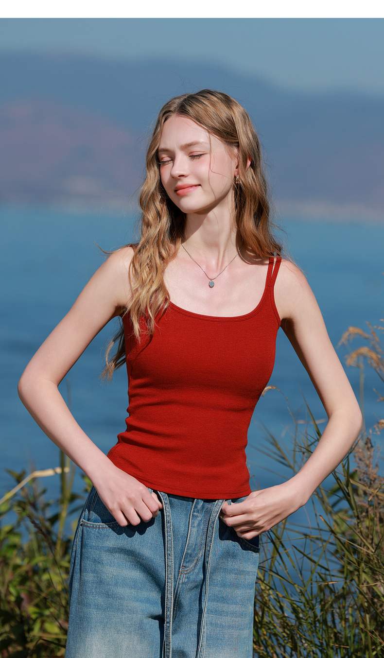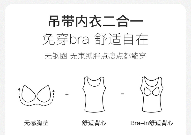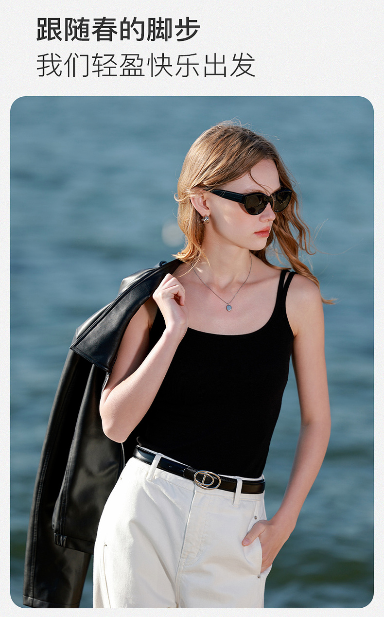 三彩2026春季新款坑条背心自带胸垫吊带修身短款打底内搭M