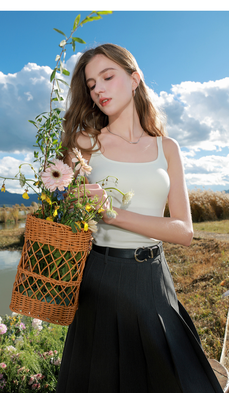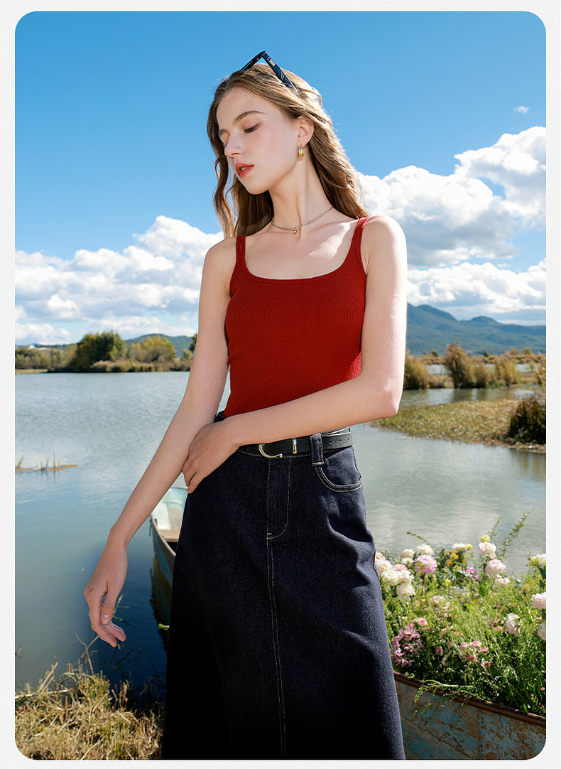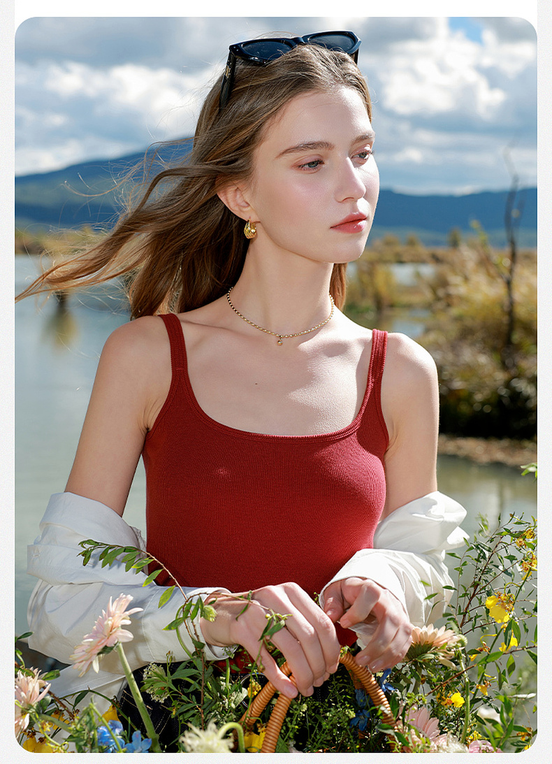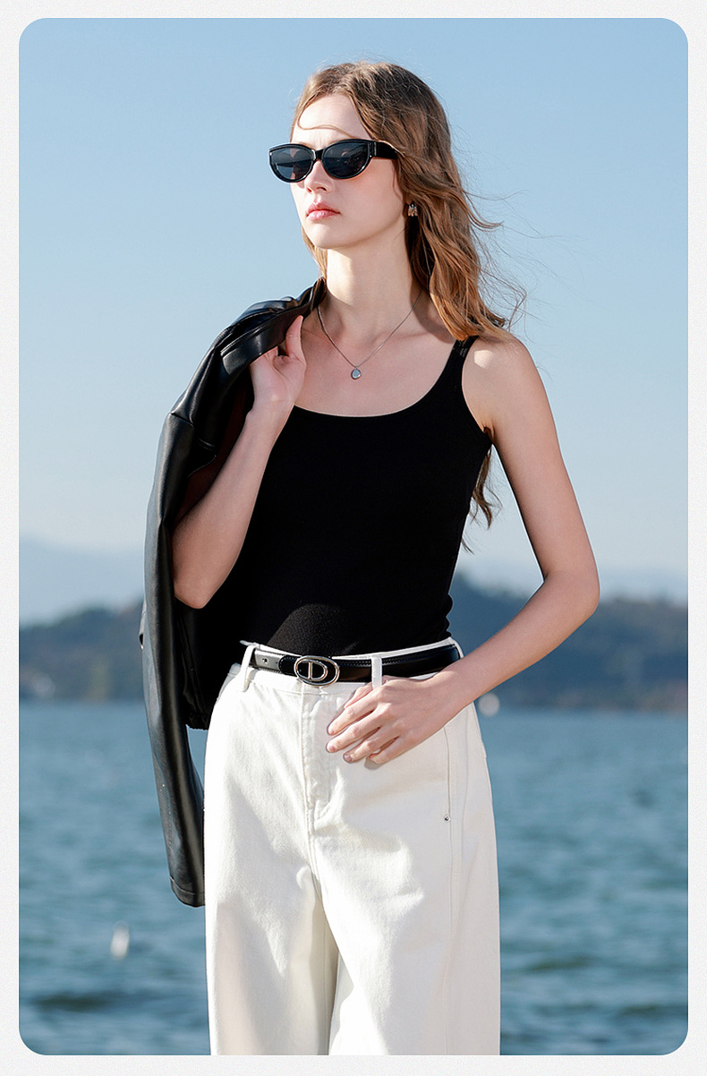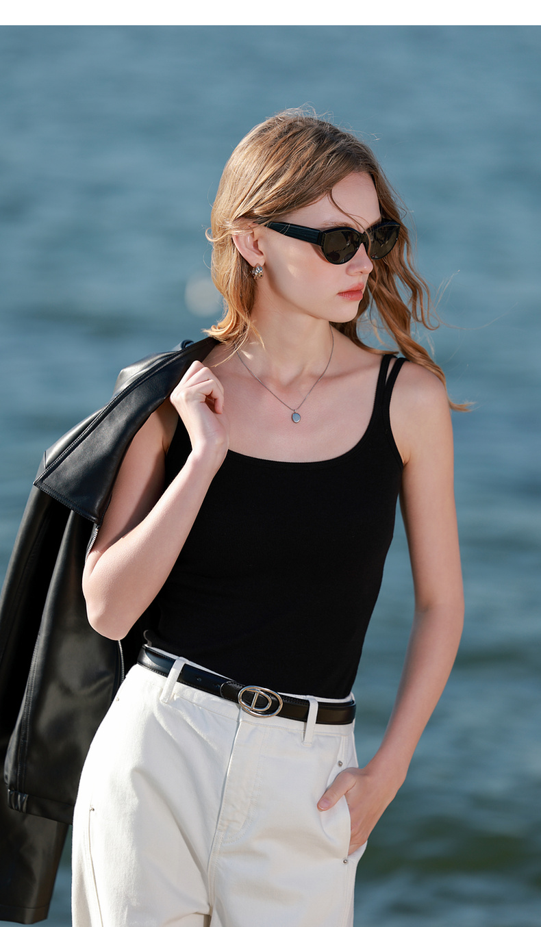三彩2026春季新款坑条背心自带胸垫吊带修身短款打底内搭M