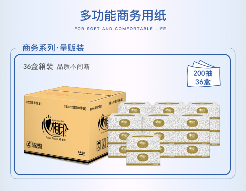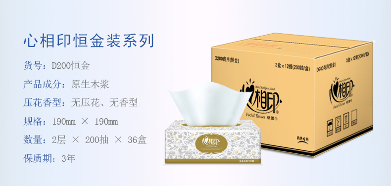 心相印 D200商用(金色)盒装纸面巾(36盒)-rxs