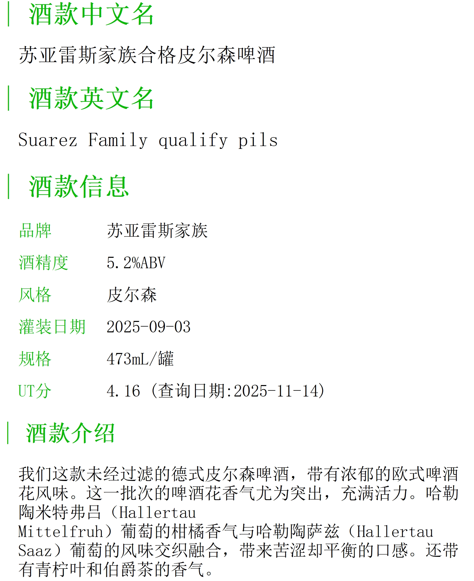 苏亚雷斯家族合格皮尔森啤酒