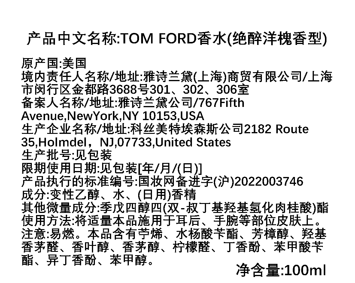 Tom ford汤姆福特/TF 绝醉洋槐(波托菲诺之花)香水