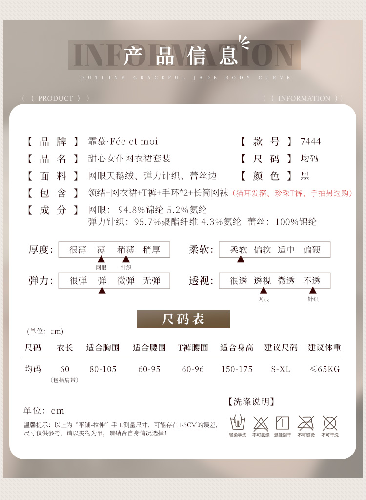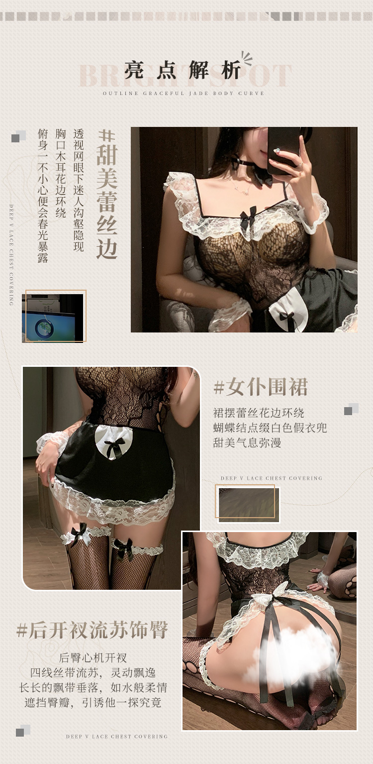 【情趣内衣】霏慕甜心女仆网衣裙套装7444(限价销售39.9)
