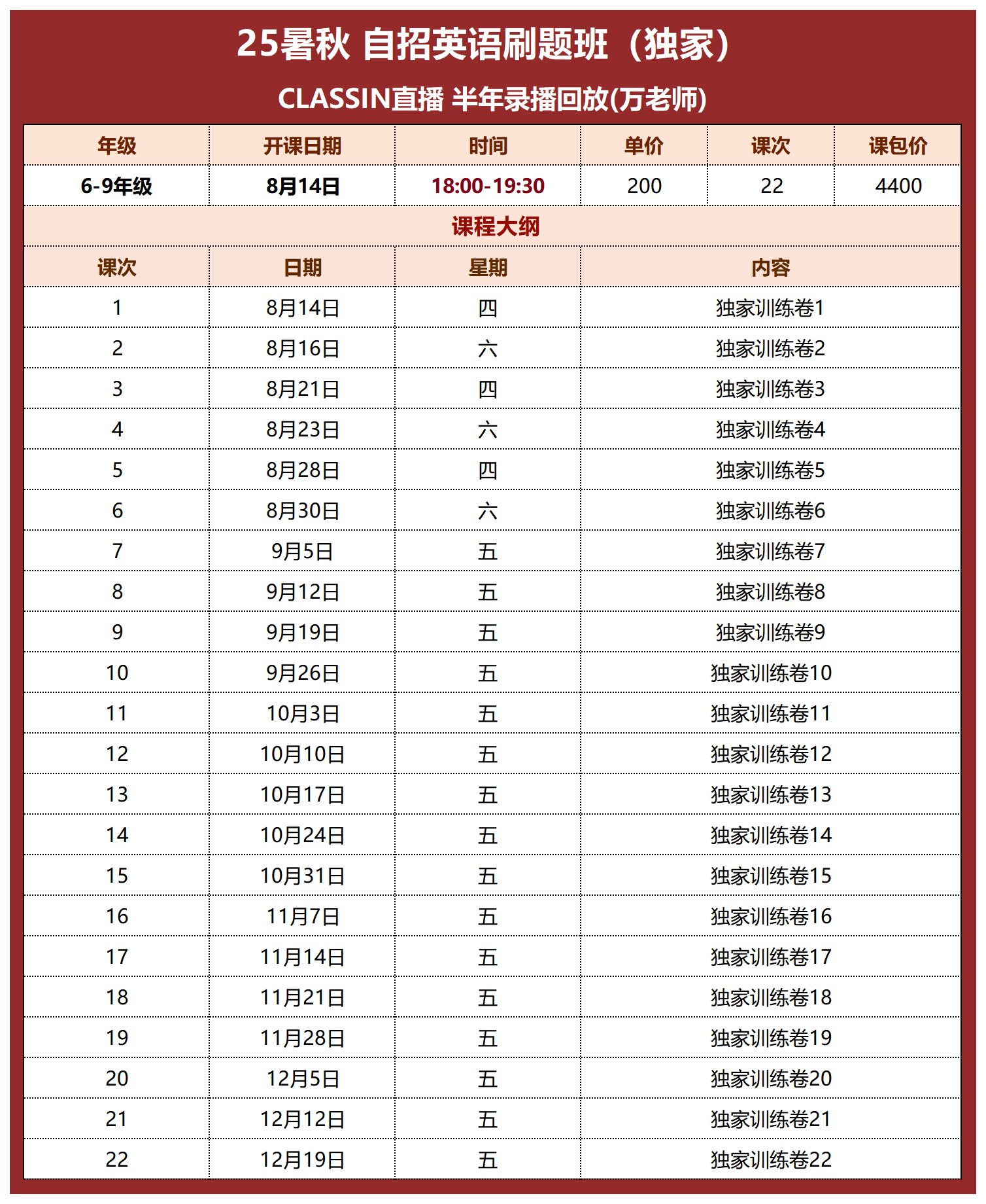 8月14日起 上课时间详见课表