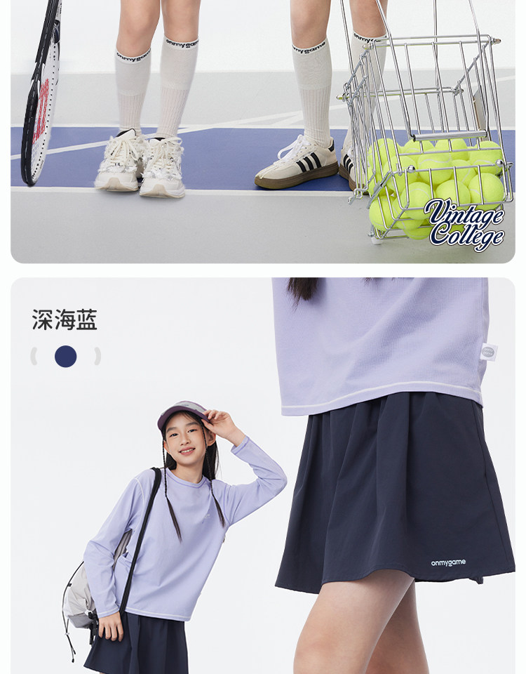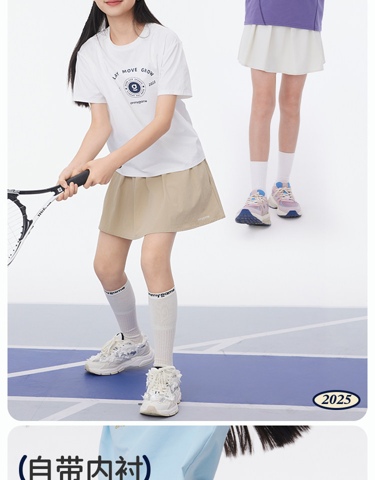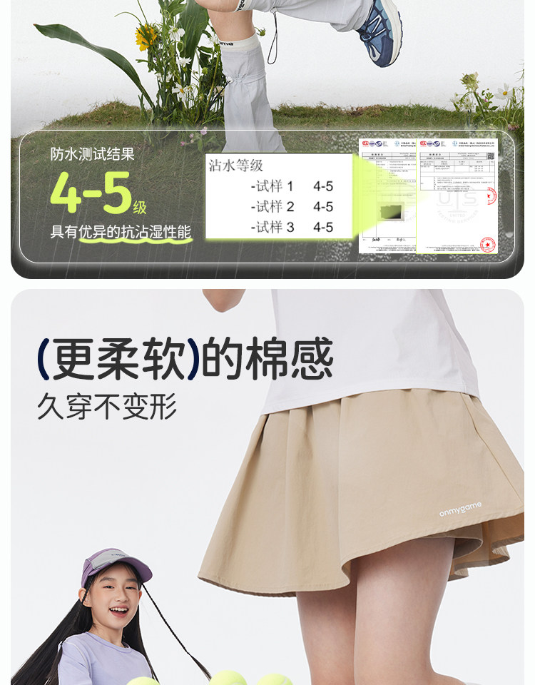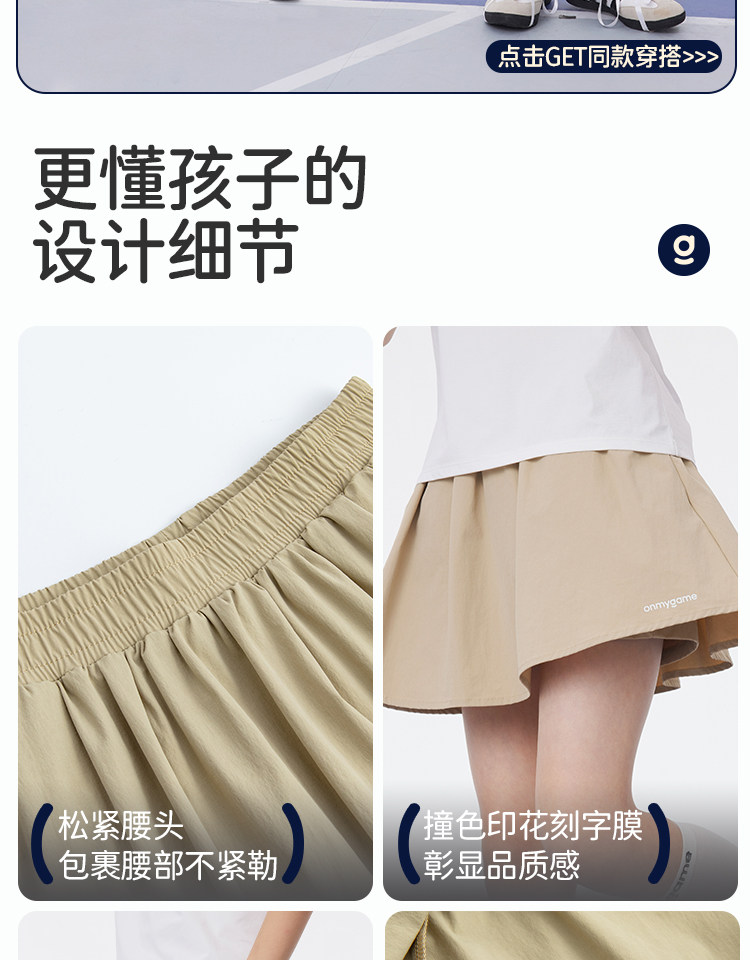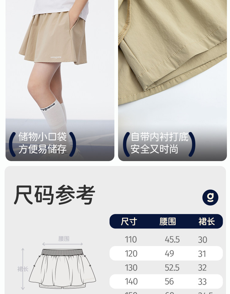 onmygame【学院蓬蓬】女童短裙学院风A字裙裤防泼水运动半身裙春KE22F110649