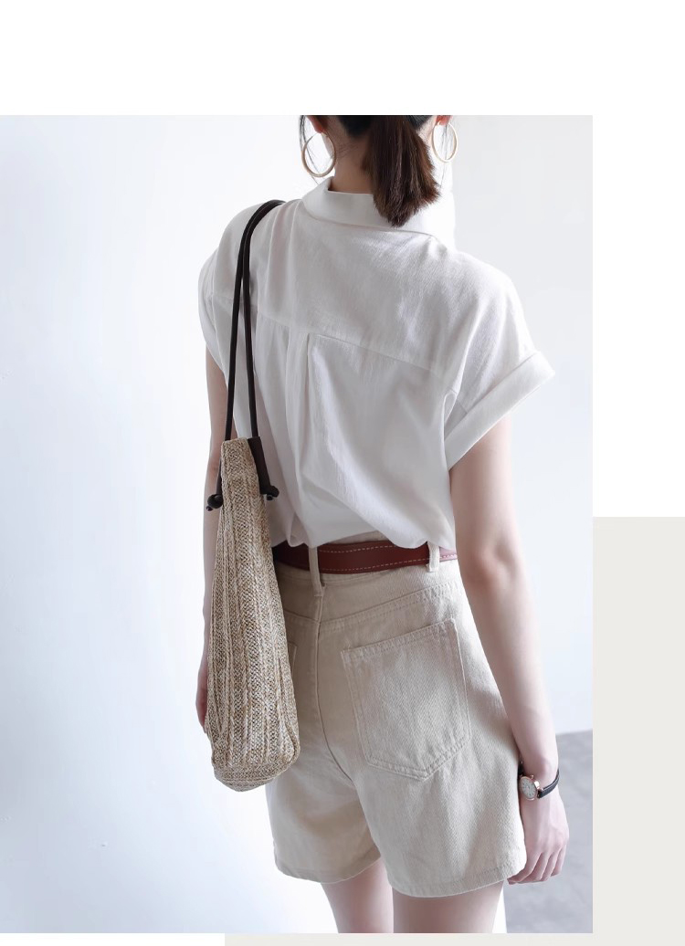 白色、鹅黄为竹节麻+人棉材质,尺码S-XL